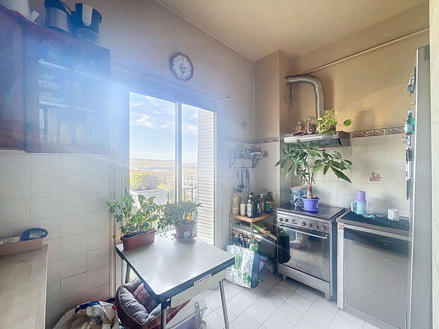 L'appartement, à rénover entièrement, se compose d'une entrée menant à un séjour ouvrant sur un balcon avec vue sur les jardins et mer, d'une cuisine indépendante, d'un dégagement, de trois chambres, d'une salle d'eau et de toilettes séparées.