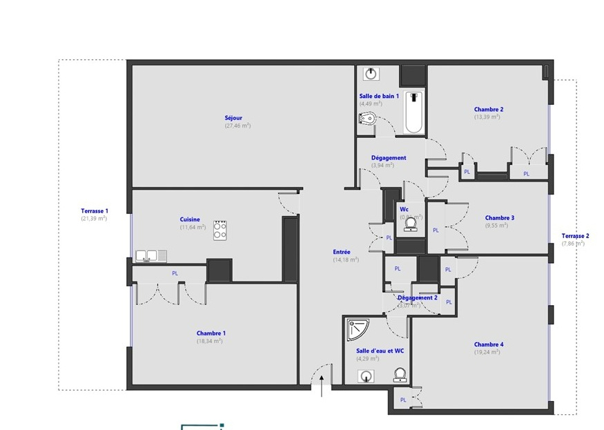 130 m² • 5 pièces • 4 chambres