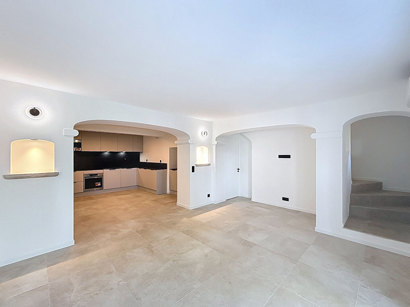 À l'étage inférieur, la pièce de vie spacieuse s'ouvre sur une magnifique terrasse de 40 m², accessible par deux ouvertures. La cuisine, aménagée et entièrement équipée, est ouverte sur le séjour. Ce niveau accueille également une chambre supplémentaire avec un accès direct à la terrasse, ainsi qu'une salle de bains avec WC.