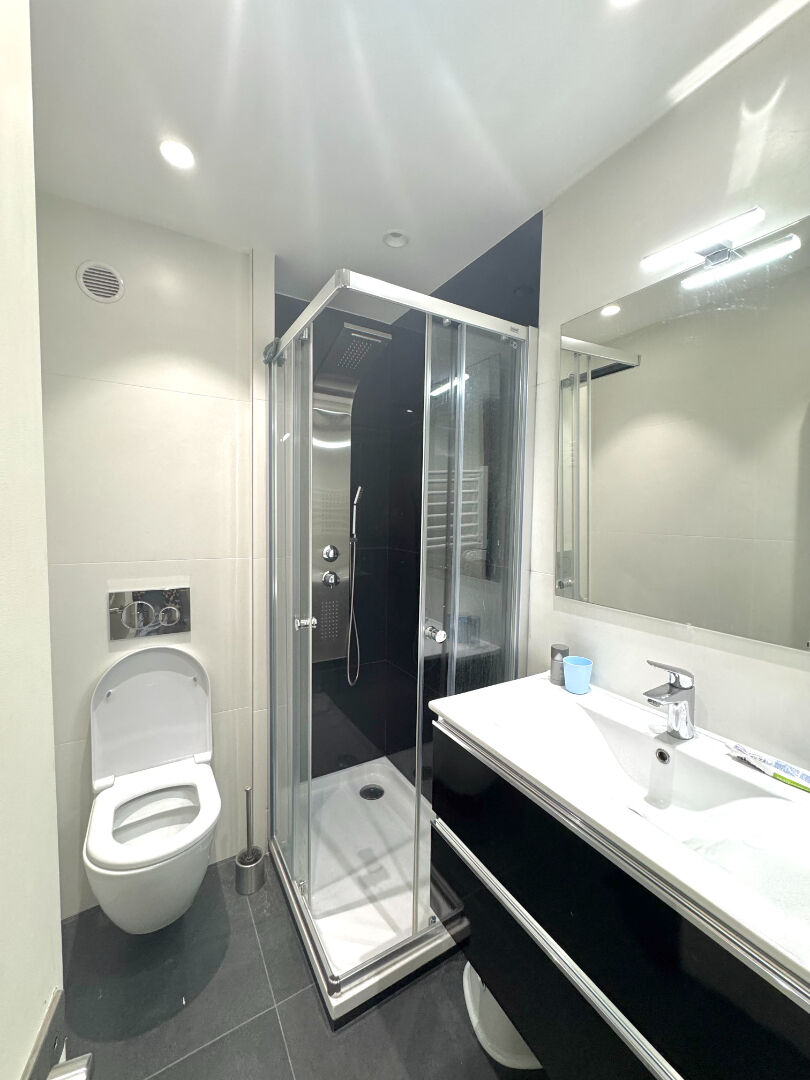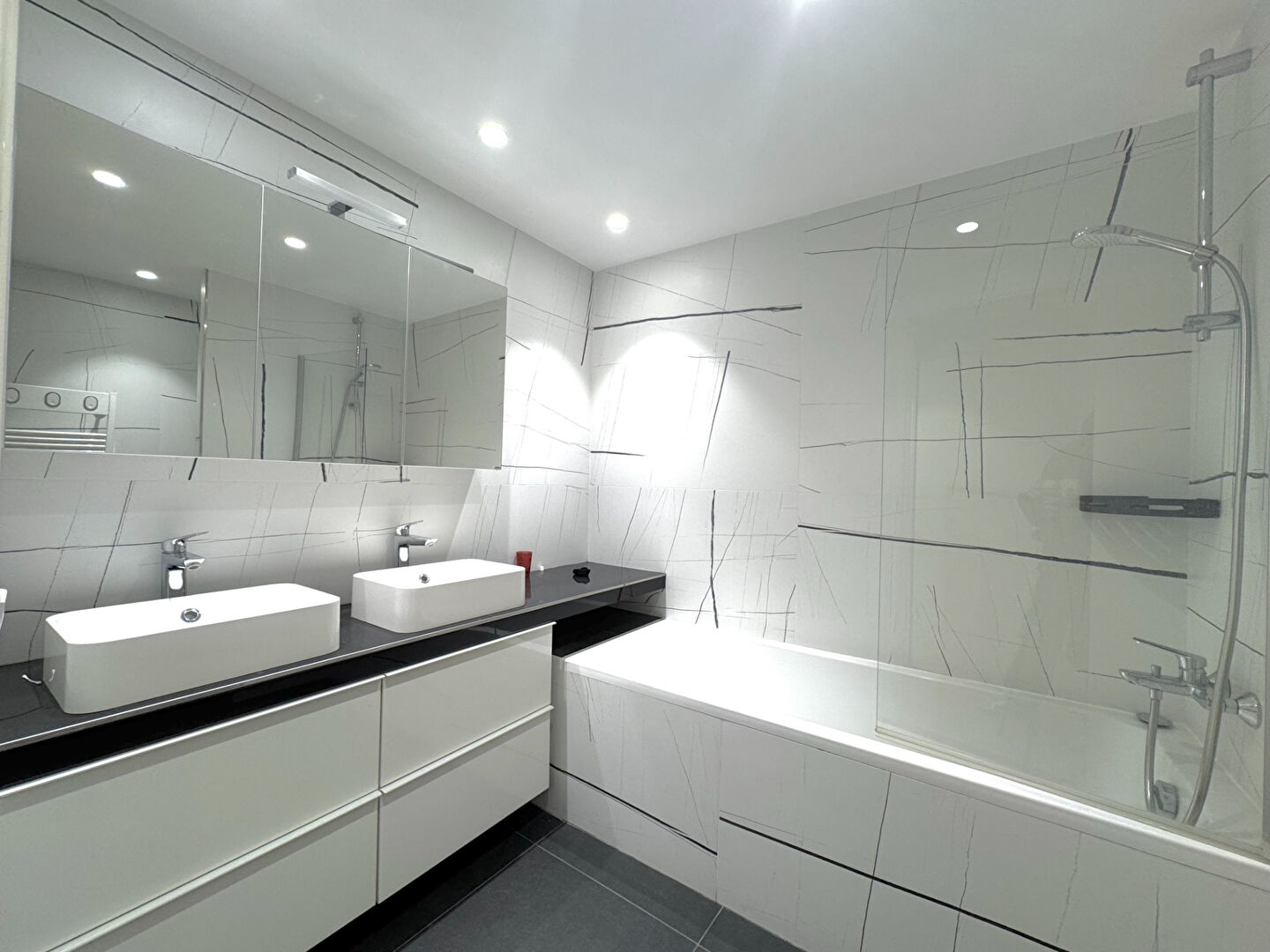 Les deux chambres bénéficient chacune d'un accès direct à un balcon : l'un commun avec le séjour, l'autre accessible également depuis la cuisine, offrant une double circulation et une belle luminosité tout au long de la journée. Une salle de bain, une salle d'eau, deux toilettes, un dressing et de nombreux rangements complètent ce bien.