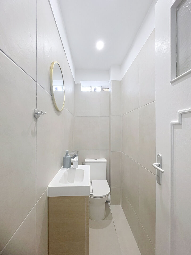 L'appartement dispose de 27,32 m² de parties communes, comprenant : un hall d'entrée, un séjour agréable, une cuisine aménagée et équipée, une salle d'eau ainsi que des WC séparés, mis à disposition des trois colocataires.