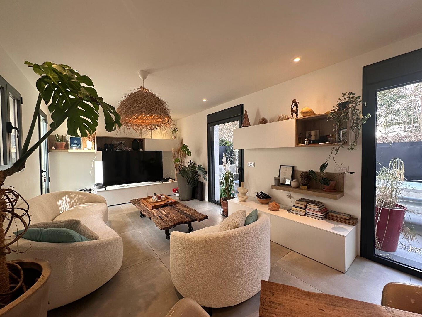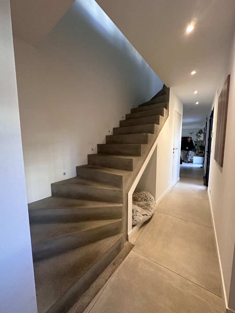 Au rez-de-chaussée, la maison offre un espace de vie de plus de 45 m² avec un séjour traversant nord-sud s'ouvrant directement sur une terrasse de 36 m². Sur le même niveau se rajoute une buanderie et un WC. Au premier niveau on trouve 3 chambres dont une suite parentale de 16,3 m², deux salles de bains chacune avec leur WC et une belle terrasse de 16,5 m².