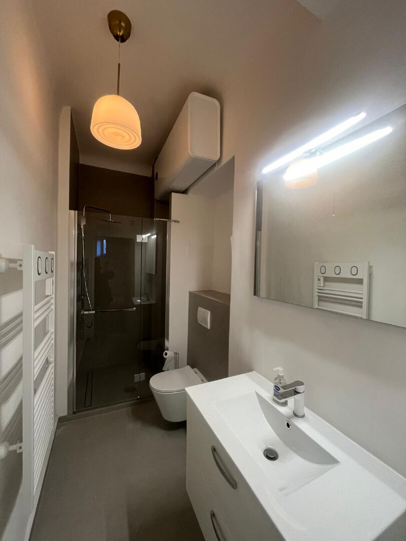 3 pièces entièrement rénové, loué meublé. Au 2ème étage par escaliers d'un immeuble niçois. Exposé ouest sur cour au calme. Appartement lumineux et proche de toutes les commodités.