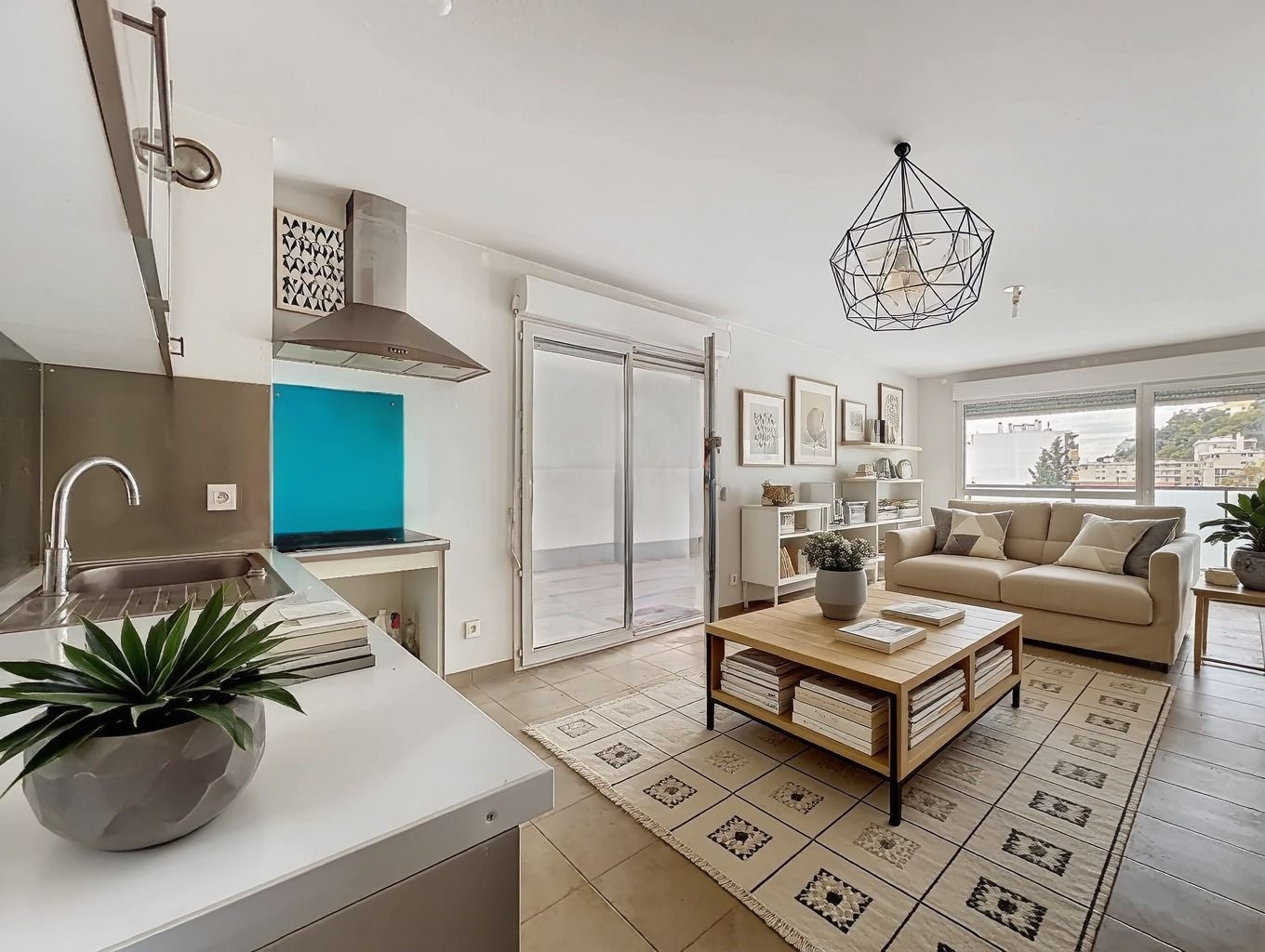 Il offre une spacieuse pièce de vie lumineuse avec cuisine ouverte ouverte sur le séjour, donnant accès à deux agréables terrasses couvertes, idéales pour profiter des beaux jours.