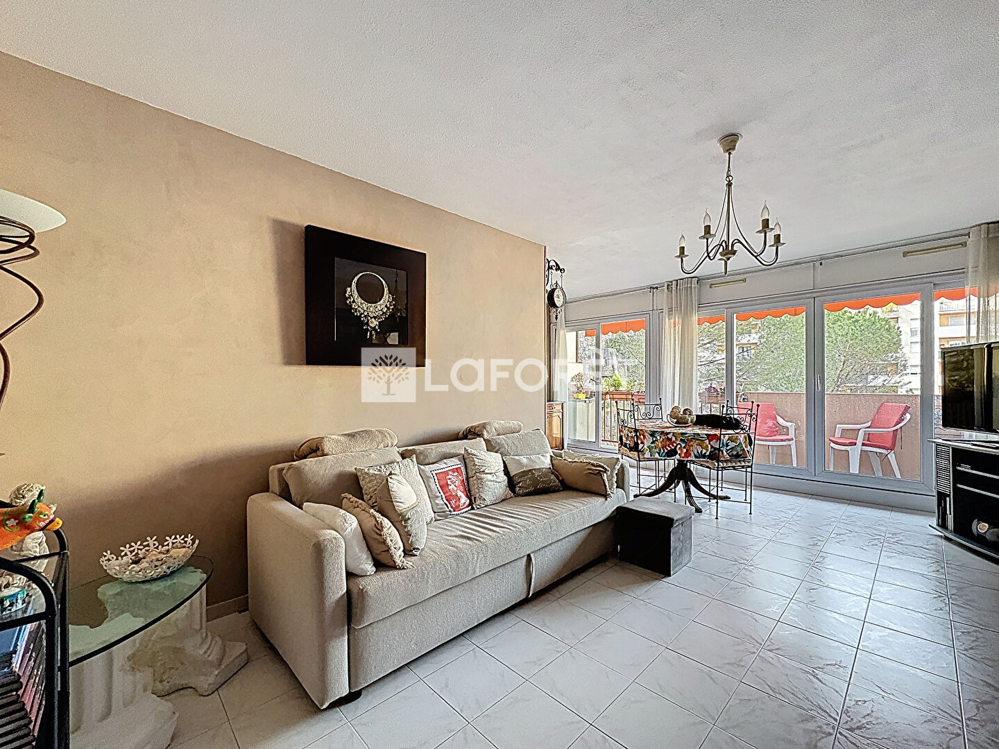 L'appartement se compose d'un séjour avec cuisine fermé donnant sur un balcon de 5m², offrant un bel espace de vie convivial, prolongé par un extérieur agréable.