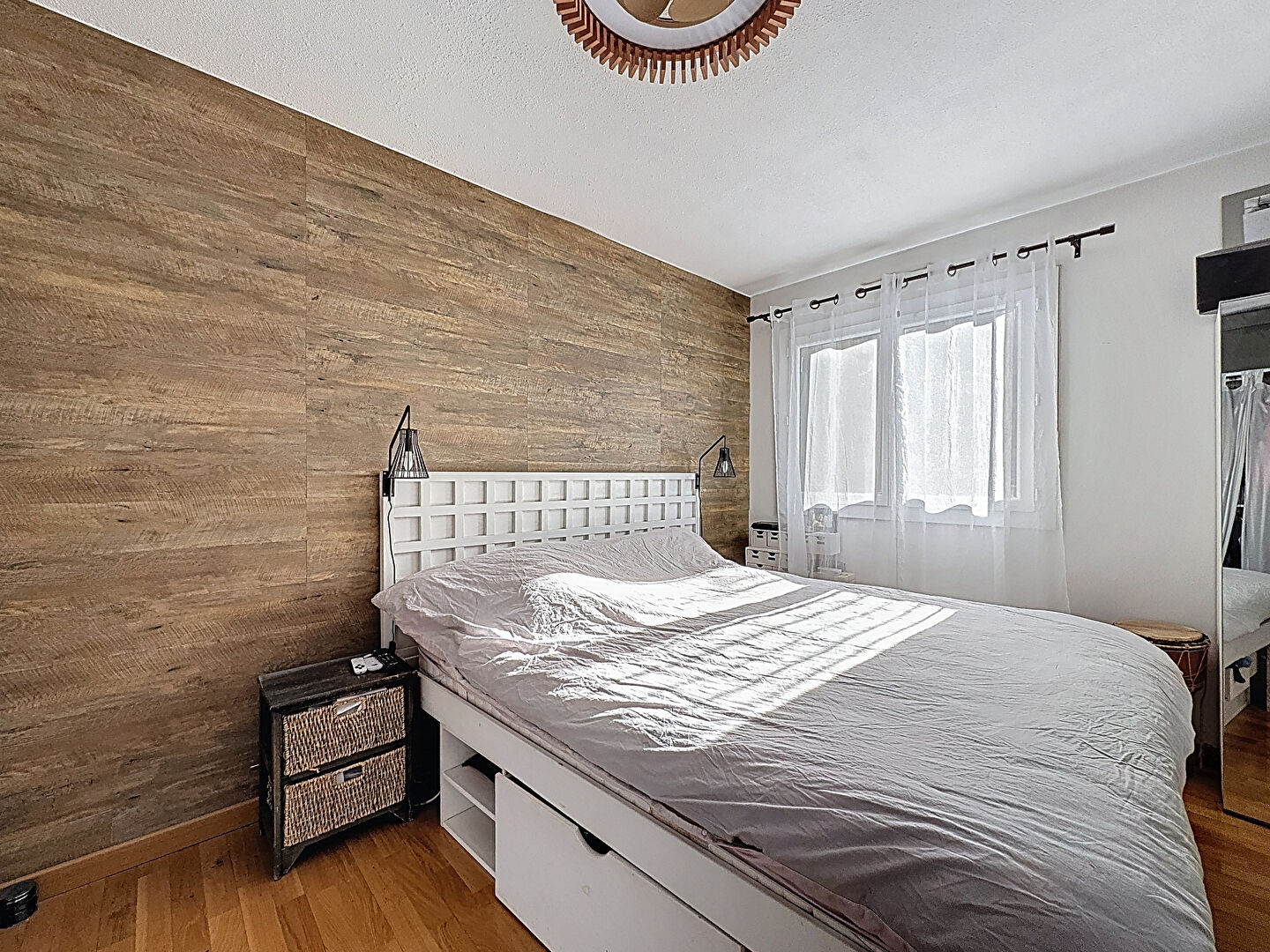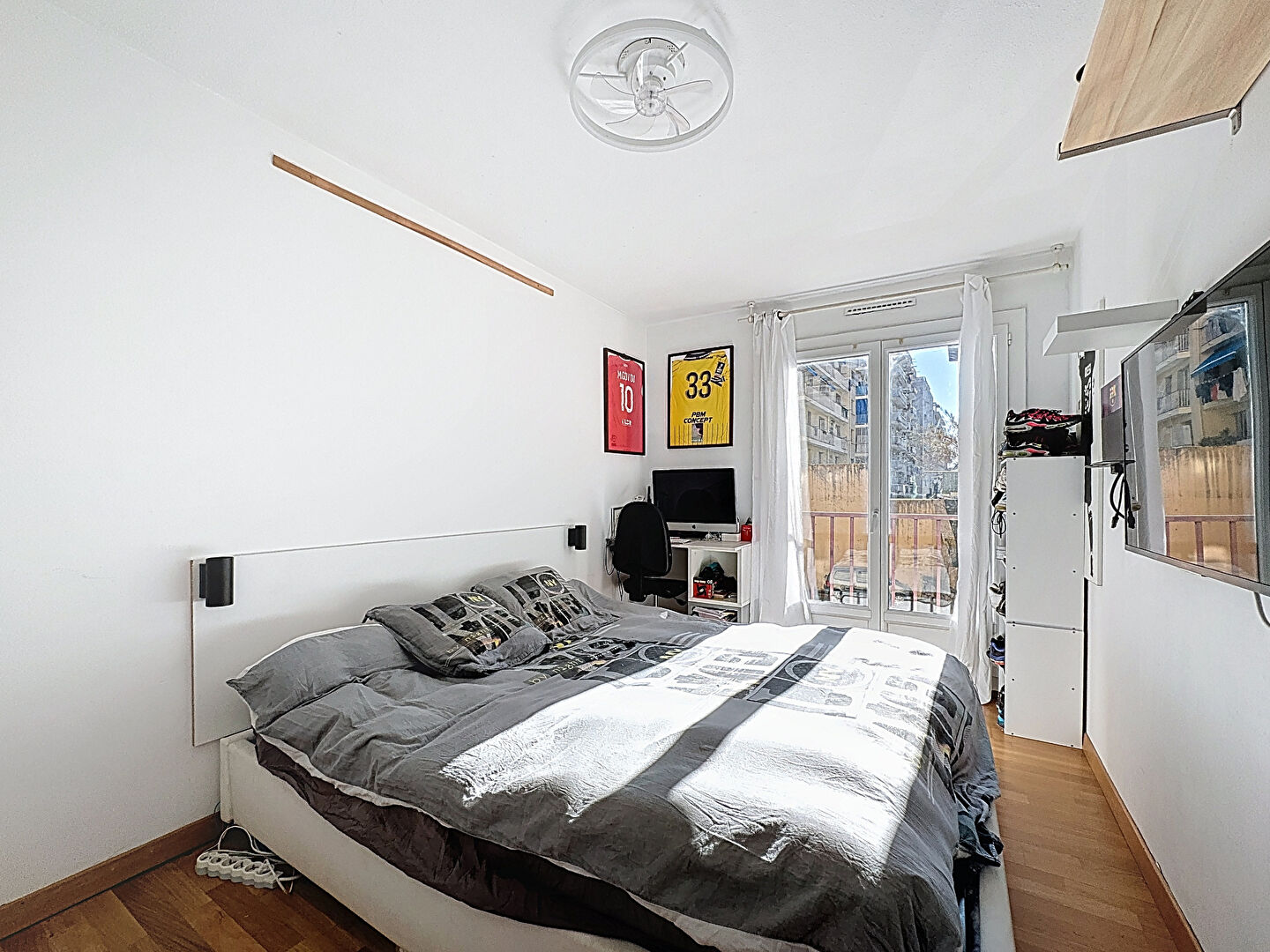 L'espace nuit, bien distinct, se compose de deux chambres exposées plein sud, calmes et lumineuses, d'une salle d'eau moderne et d'un WC indépendant. Le bien dispose également d'une troisième chambre, actuellement exploitée en salon.