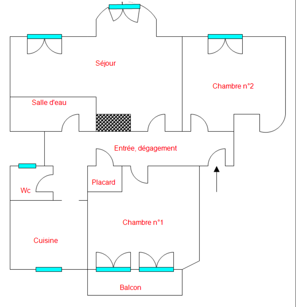 La partie nuit comprend deux belles chambres, dont l'une bénéficie d'un balcon, apportant un agréable espace extérieur. Un grand couloir assure une circulation fluide entre les pièces. L'appartement dispose également d'une salle d'eau et de WC séparés.