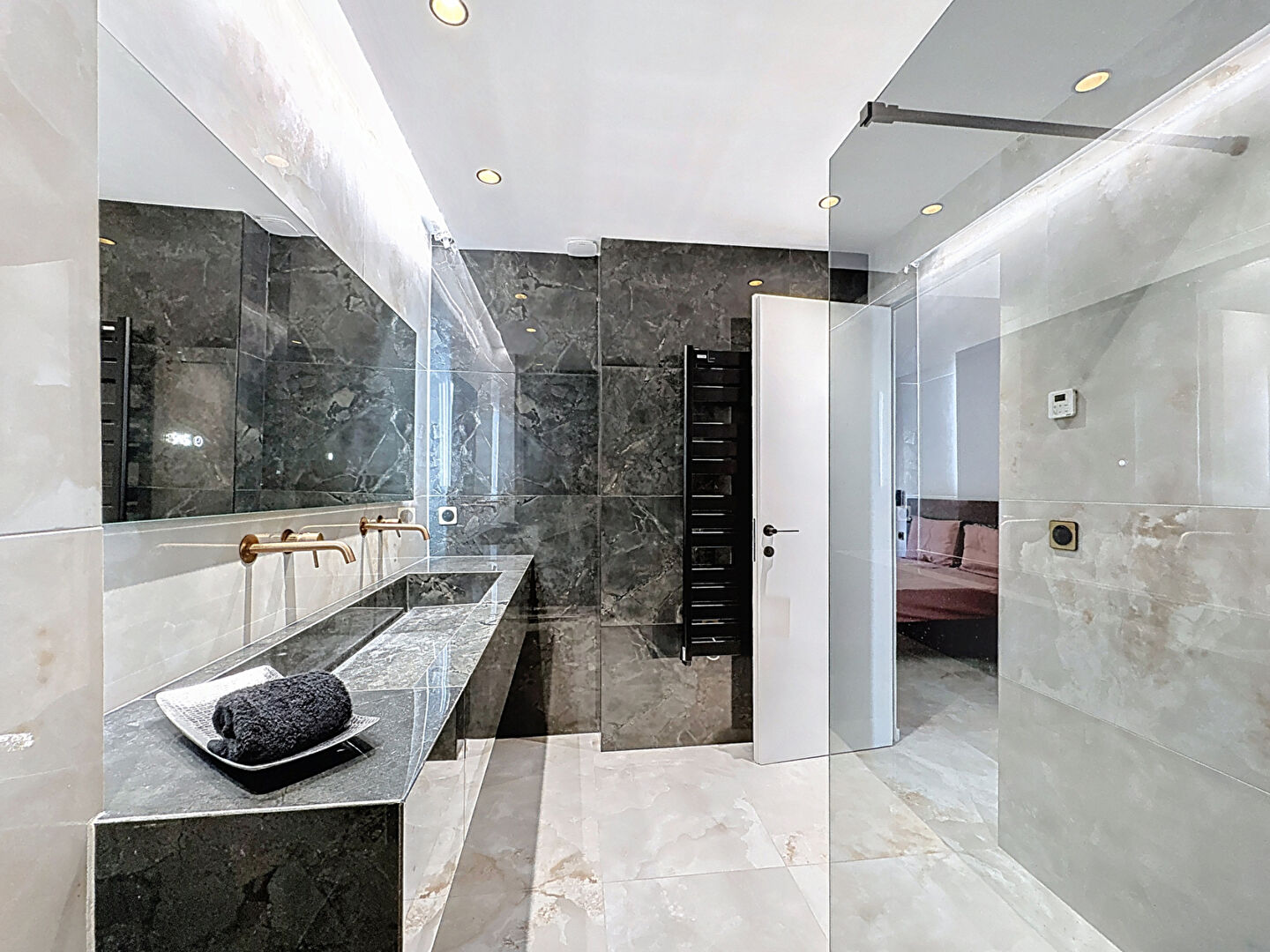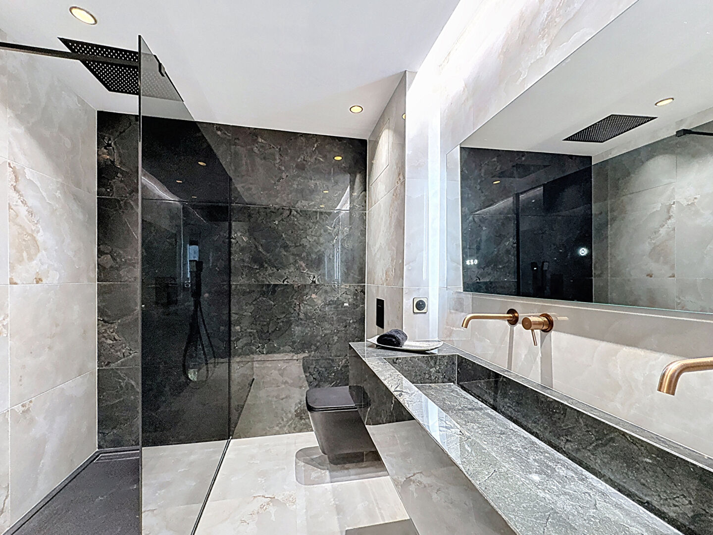 L'espace nuit comprend deux chambres en suite, chacune disposant de sa salle d'eau privative et de son dressing, garantissant confort et intimité. Toutes les pièces sont climatisées, faisant de cet appartement un bien clé en main, prêt à vivre.