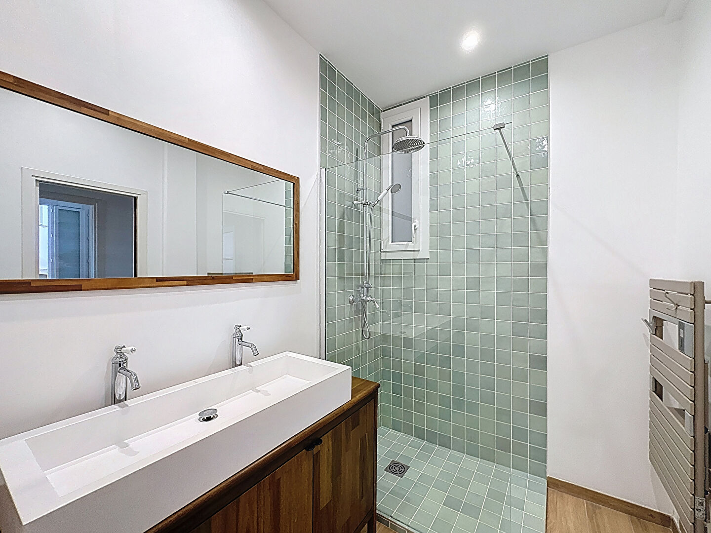 L'appartement, entièrement rénové en 2023, allie le charme de l'ancien et le confort du moderne : parquet en bois massif, belle hauteur sous plafond, menuiseries double vitrage et climatisation.