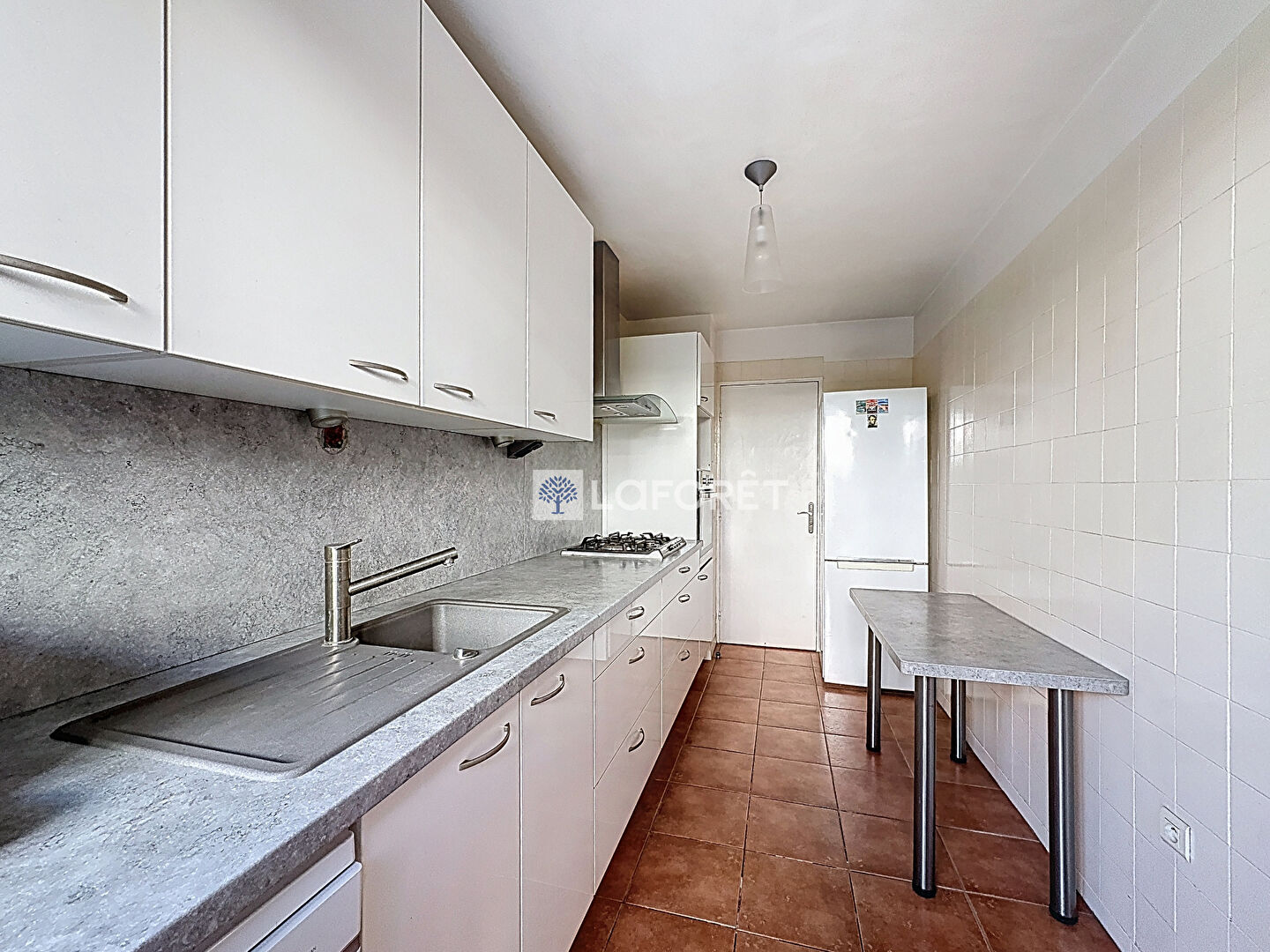 La cuisine est entièrement équipée, fonctionnelle et pratique. L'appartement comprend également une salle d'eau, une salle de bain ainsi que des WC séparés.