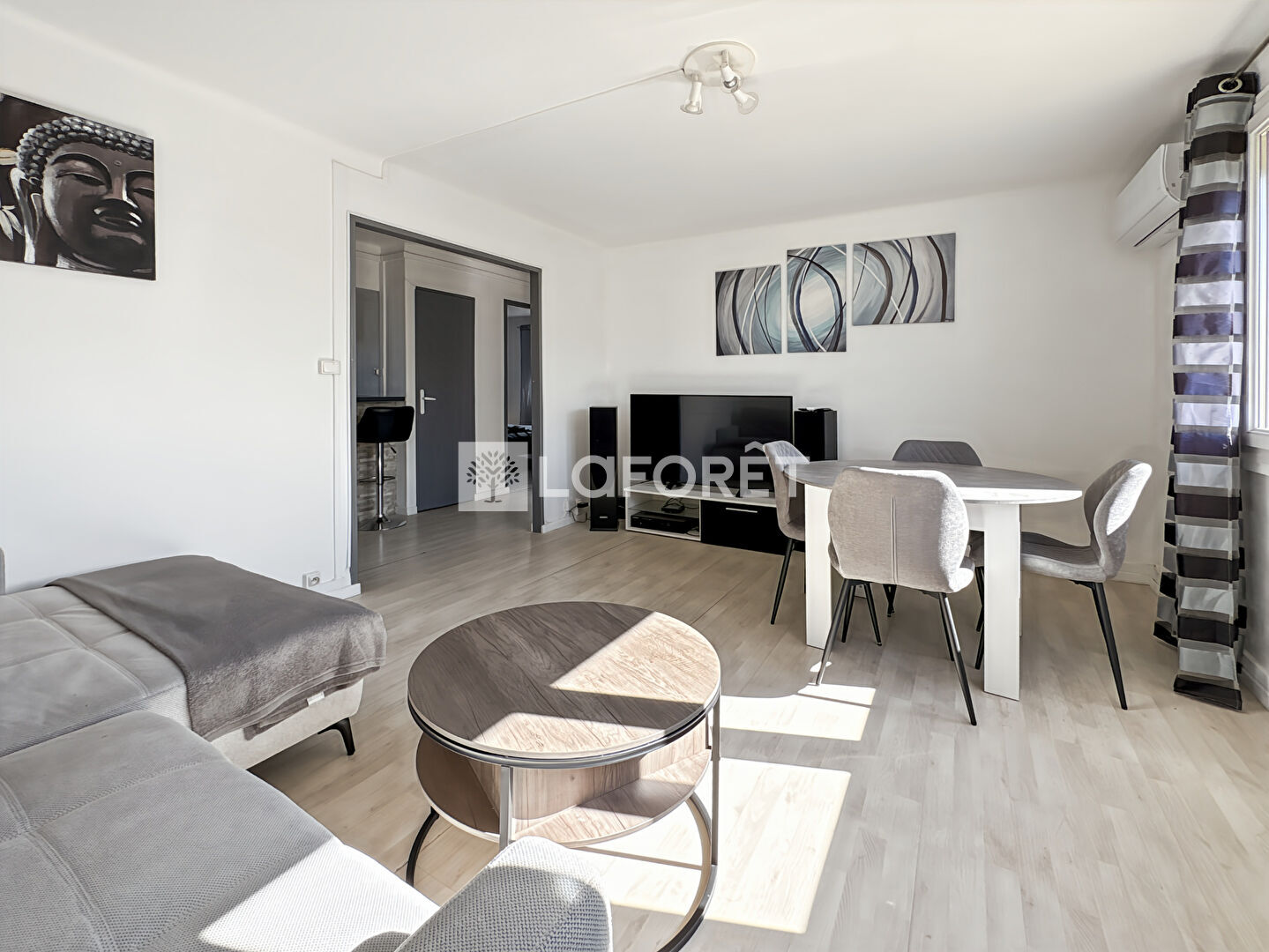 Il se compose d'une entrée qui s'ouvre sur un espace de vie fonctionnel avec un beau séjour avec climatisation et une cuisine aménagée / équipée. Un dégagement avec rangement dessert deux belles chambres, dont une avec balcon, une salle de bains et un wc indépendant.
