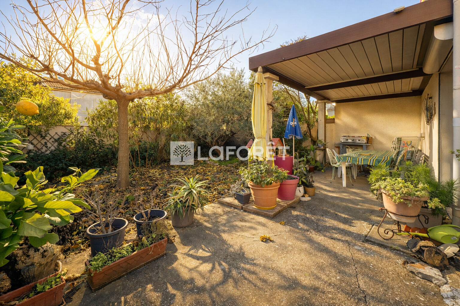 Au rez-de-chaussée, l'entrée dessert un séjour ouvert sur le jardin avec une terrasse couverte par une pergola bioclimatique, idéal pour profiter des beaux jours.
