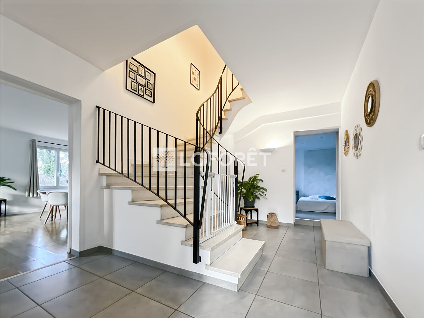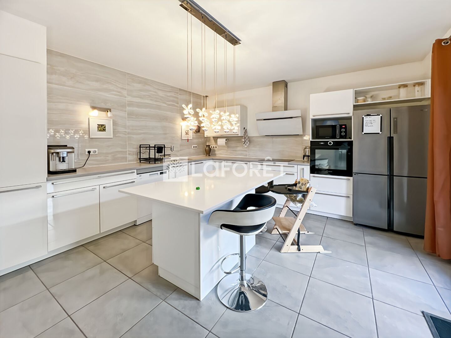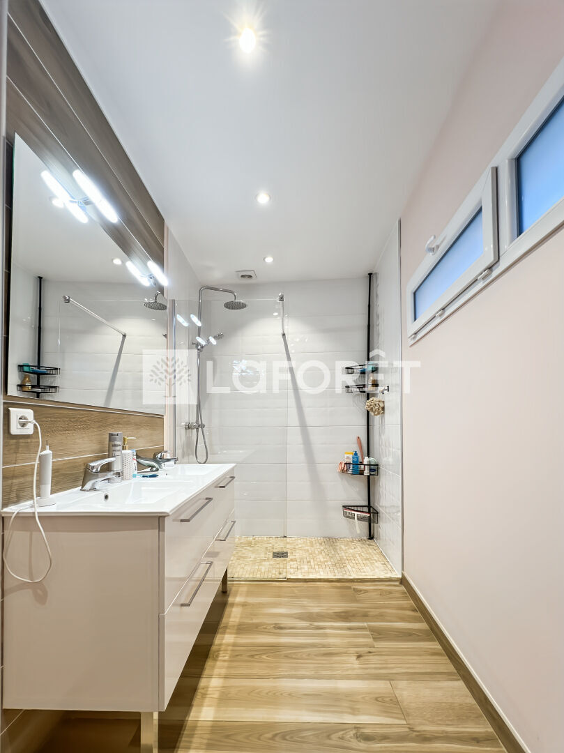 Au rez-de-chaussée, une vaste cuisine dînatoire moderne et un séjour lumineux avec cheminée ouvrant sur une belle terrasse. Ce niveau offre également des toilettes indépendants et une suite comprenant chambre et salle de bains, ouverte sur une terrasse privative.
