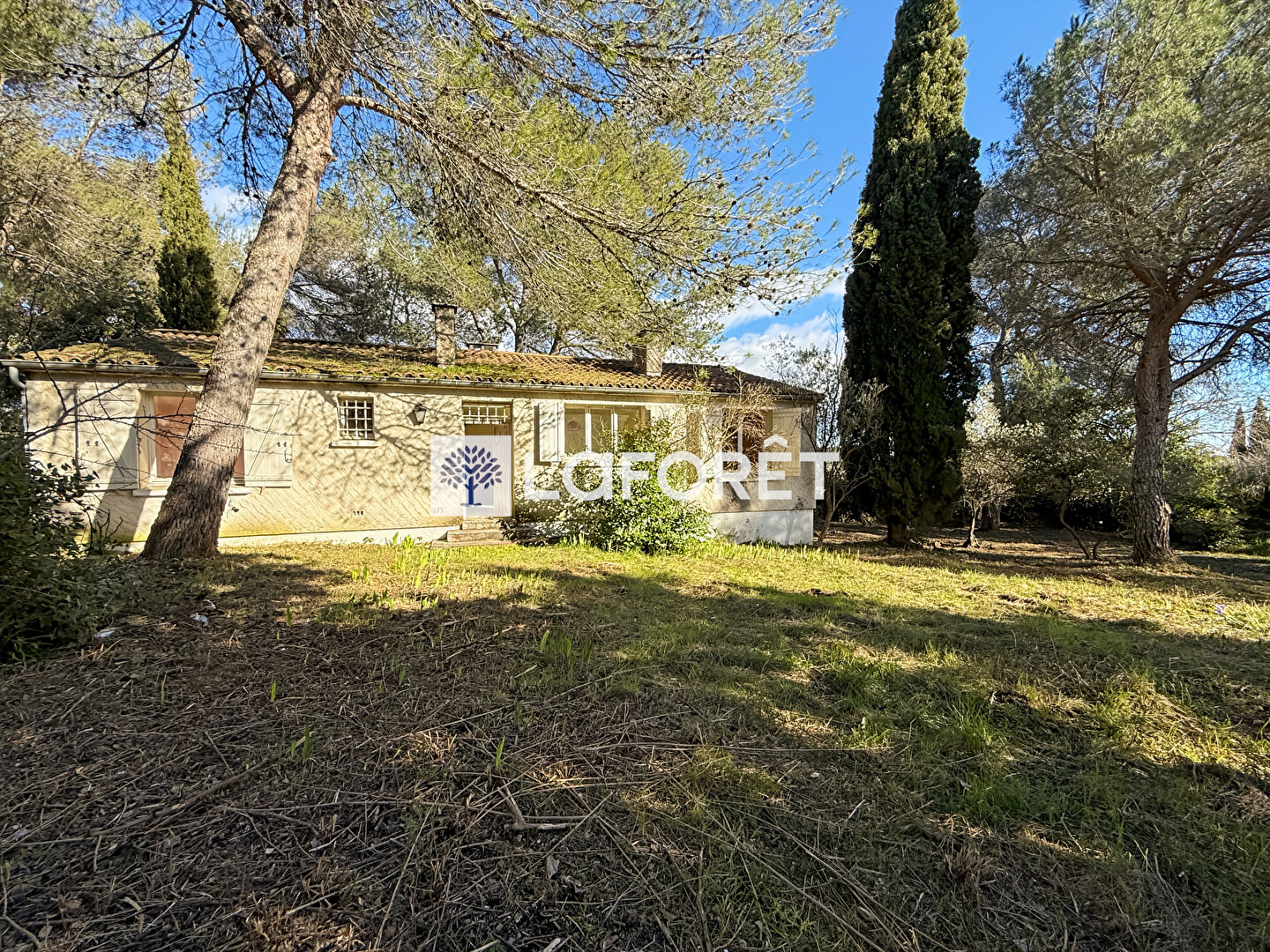 Laforêt Nîmes Jaurès vous propose en exclusivité, dans le secteur très recherché des 3 Ponts, cette maison de plain-pied d'environ 100 m², implantée sur une remarquable parcelle arborée de plus de 4 600 m².