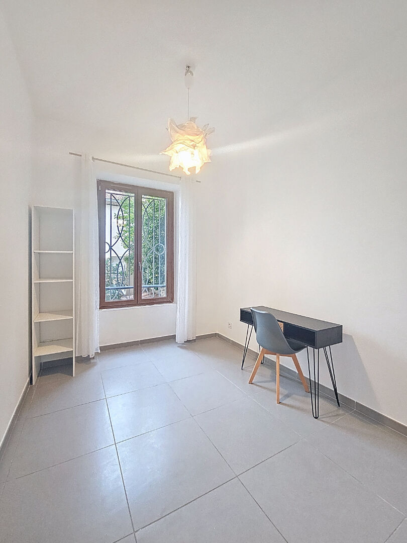 Le couloir d'entrée avec placards distribue une grande chambre (coté jardin), un salon/cuisine, un bureau (coté rue), une salle d'eau avec fenêtre et un WC indépendant.