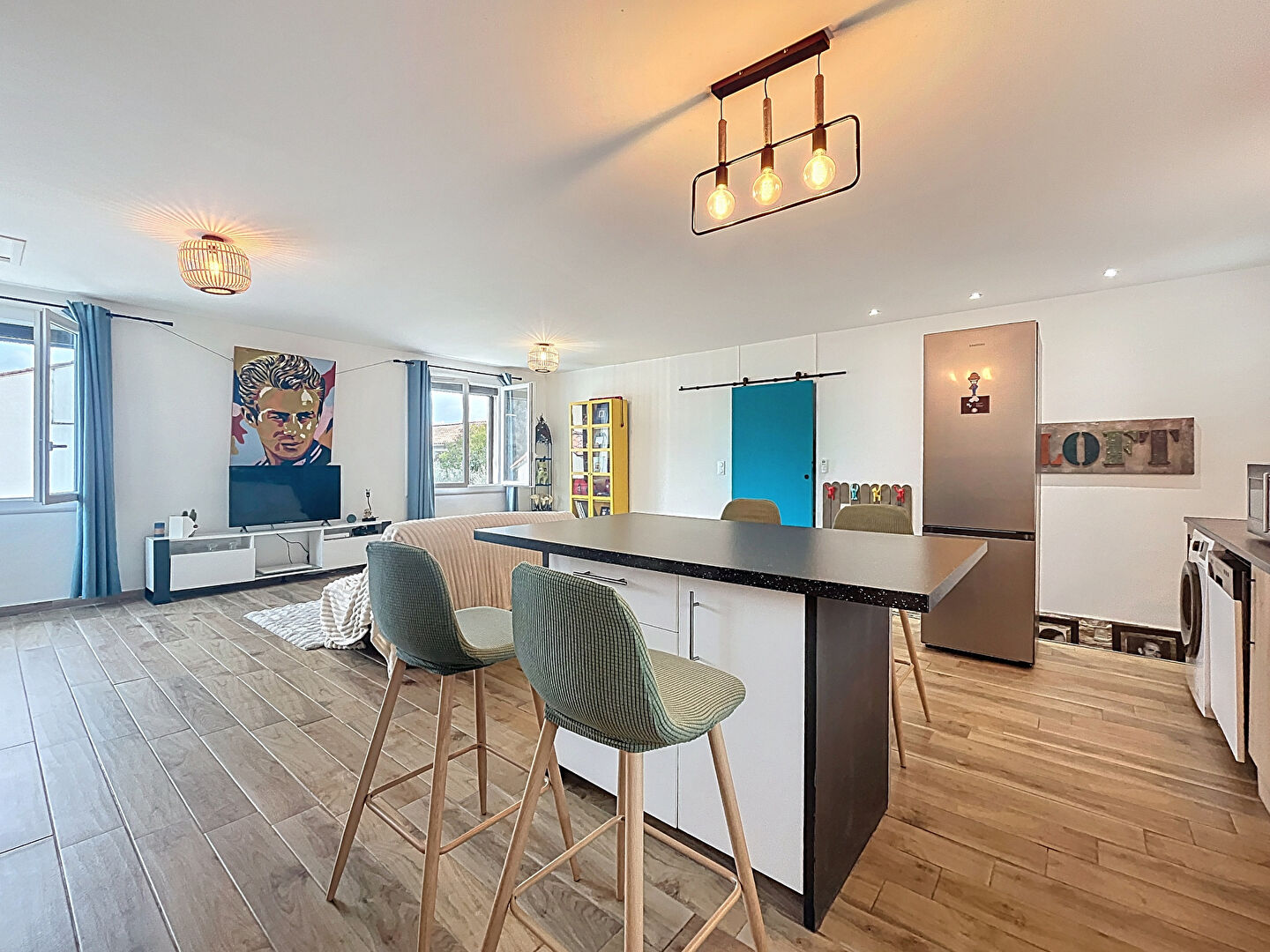 Coup de coeur assuré pour cette jolie maison des années 1955 composée à l'étage d'un logement esprit loft : une vaste pièce de vie de près de 45 m2 avec cuisine équipée, une chambre, un espace dressing, une salle d'eau/wc.