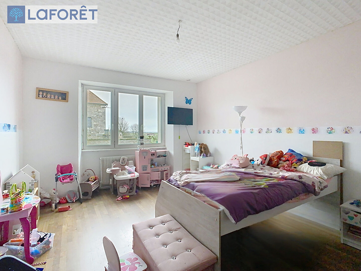 Le second logement, un T3, se compose d'un salon, d'une cuisine, de deux chambres de 12m², d'une salle de bains, d'un WC, d'un vaste grenier de 120m², d'un garage et d'espaces stockages attenants.