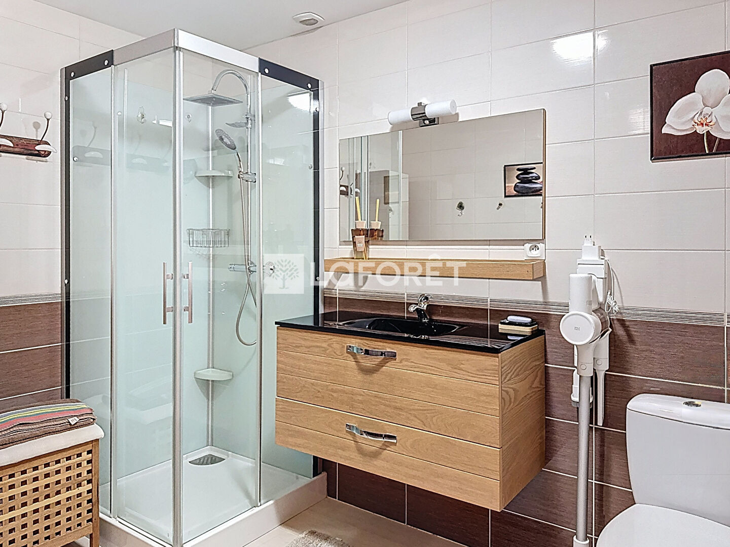 Elle est composée d'une belle cuisine équipée, d'un séjour lumineux, d'une salle d'eau et d'un WC séparé.