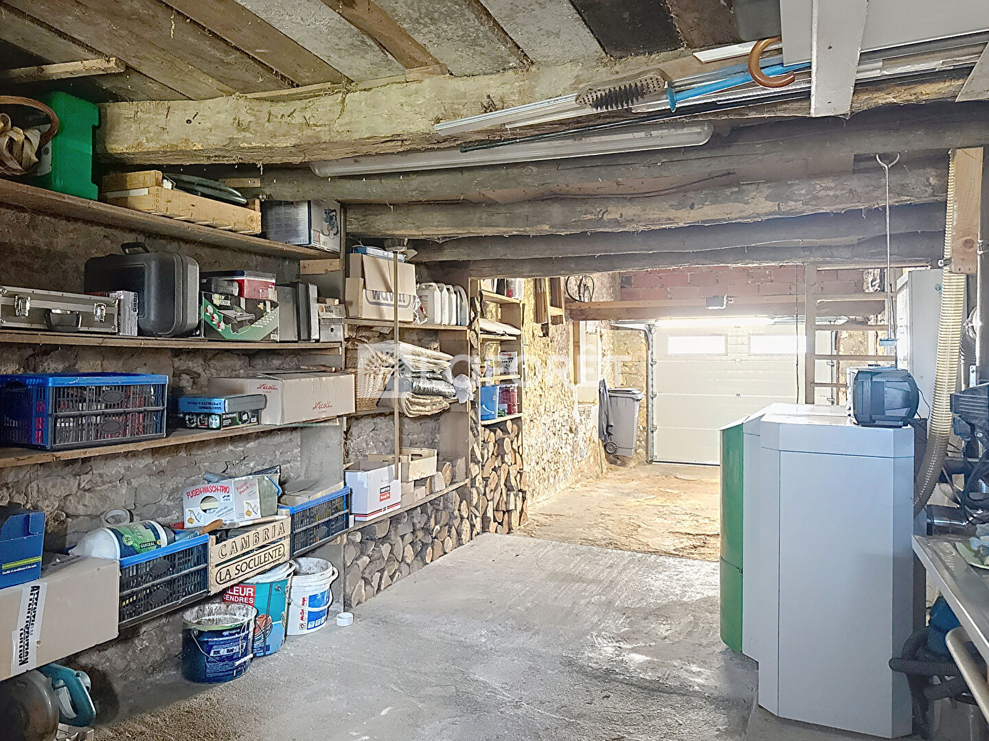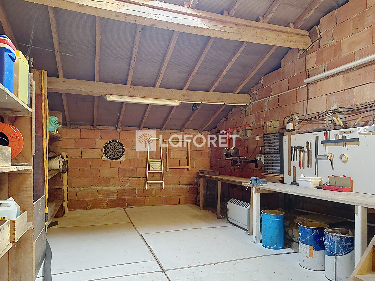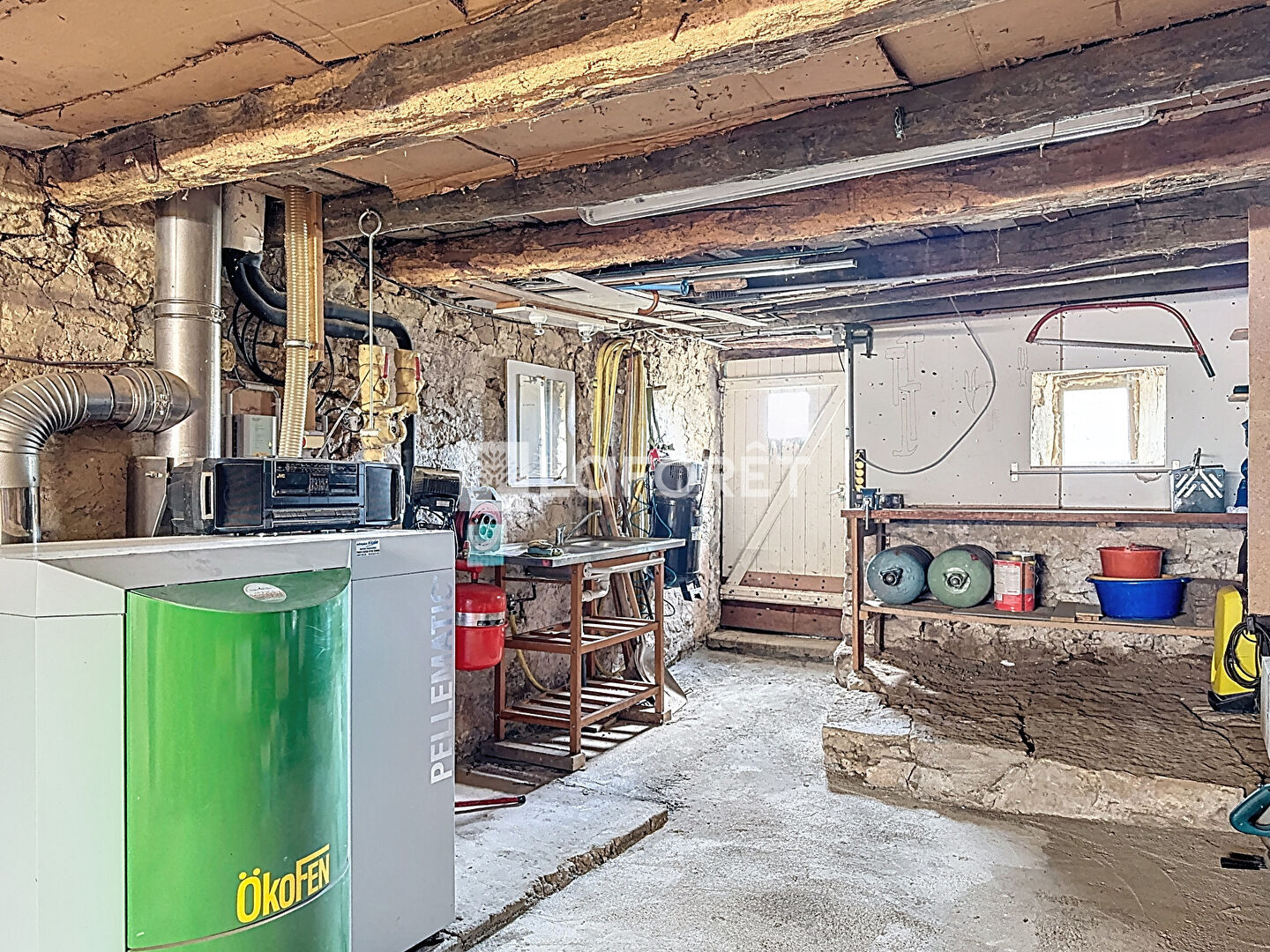 Côté dépendances, vous trouverez un garage avec porte électrique pouvant accueillir un véhicule, un atelier avec un accès à la terrasse extérieure, possédant une chaudière à granulés raccordée à un silo de 4 tonnes, alliant économie et praticité.