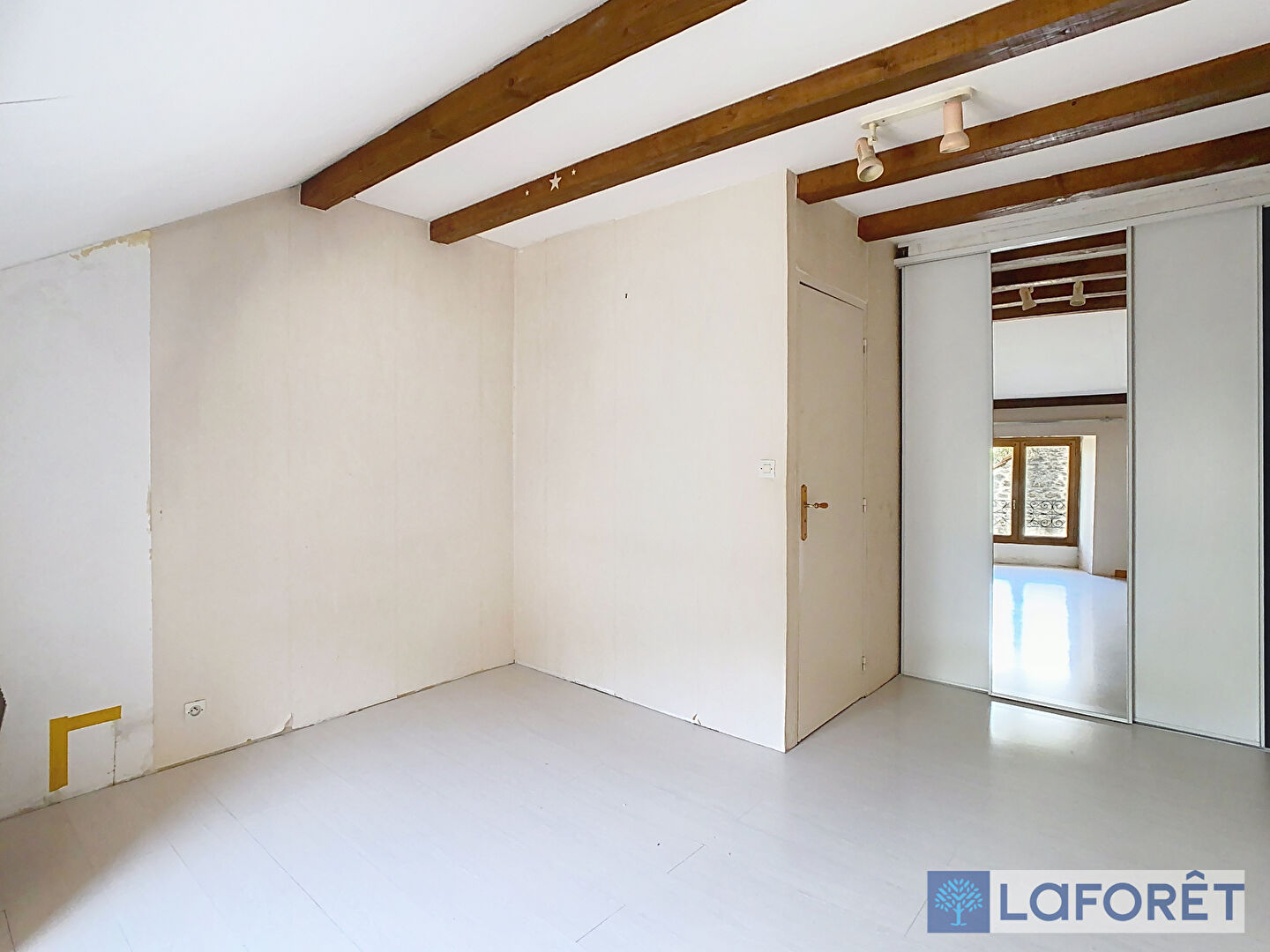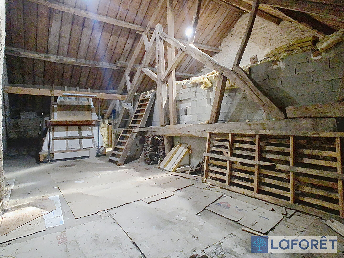À l'étage vous trouverez deux chambres spacieuses, une pièce de 5m² prête à accueillir une salle d'eau/salle de bains, ainsi qu'un grenier de 50m².