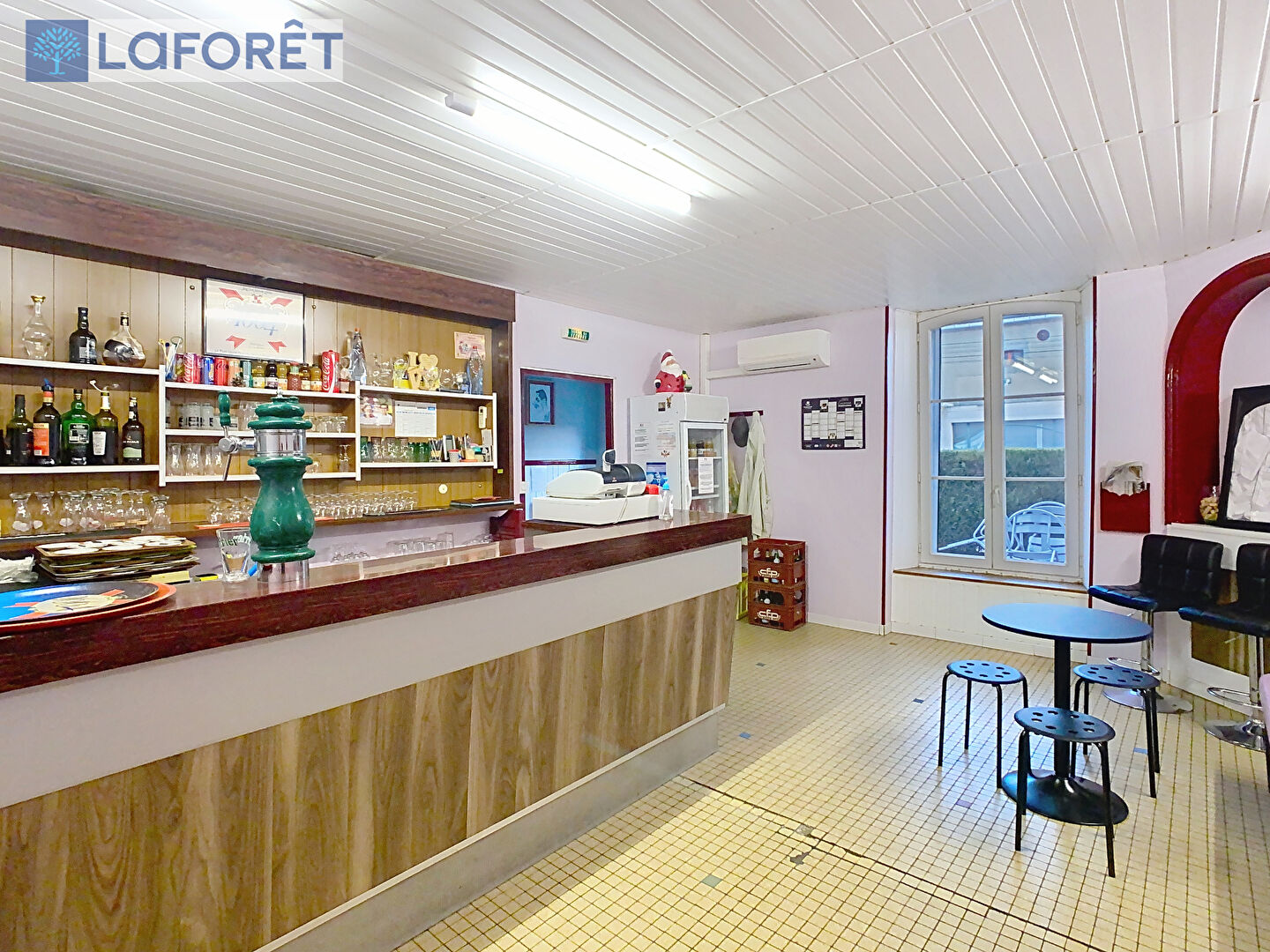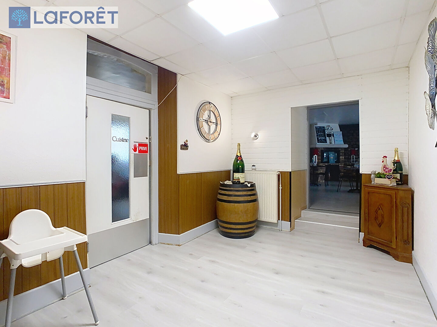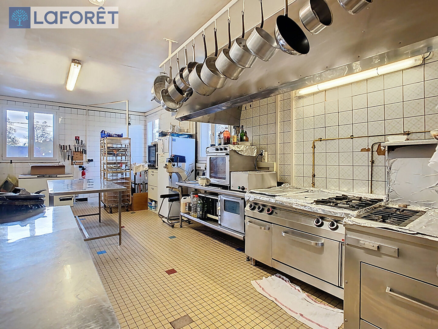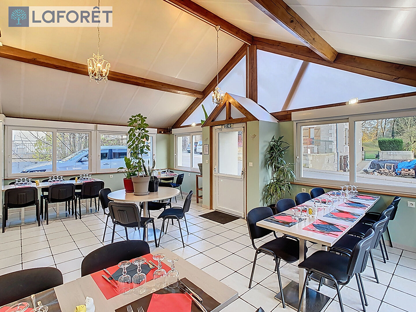 La partie restaurant se compose d'une large entrée, d'un vaste espace de réception clients de plus de 150m² réparti sur quatre salles climatisées (dont une prenant place dans une belle véranda lumineuse), d'un espace sanitaires, d'une salle de bar, d'une cuisine professionnelle de 70m² et d'un espace pouvant accueillir de la clientèle en nuitées composé de trois chambres et d'une salle d'eau.