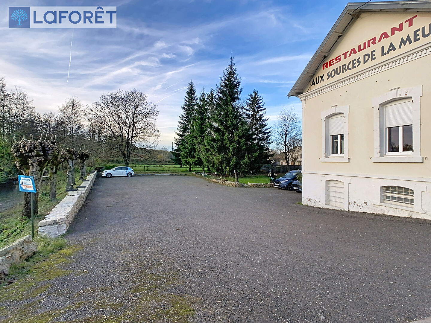L'ensemble est installé sur un terrain de 2376m² au cadre tranquille et naturel (vaste jardin arboré à l'arrière, rivière "La Meuse" passant paisiblement en bordure de propriété. . .) proposant en prestations extérieur une terrasse à l'avant du bâtiment, un parking véhicules légers ainsi qu'un spacieux parking poids lourds.