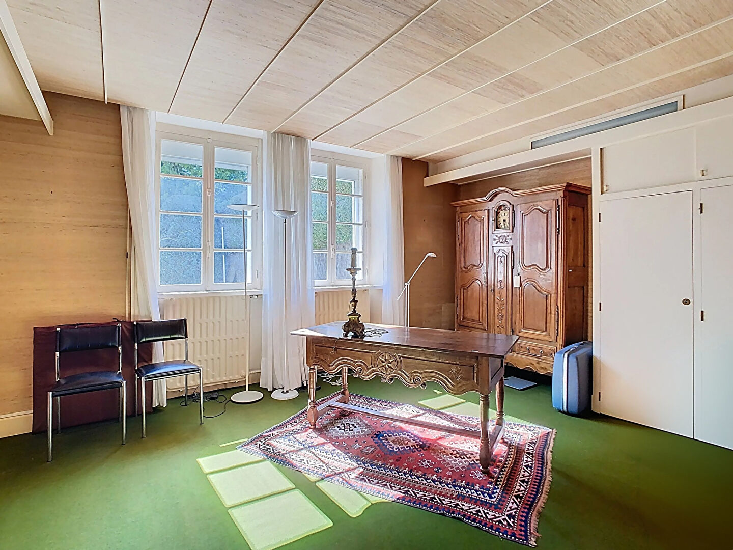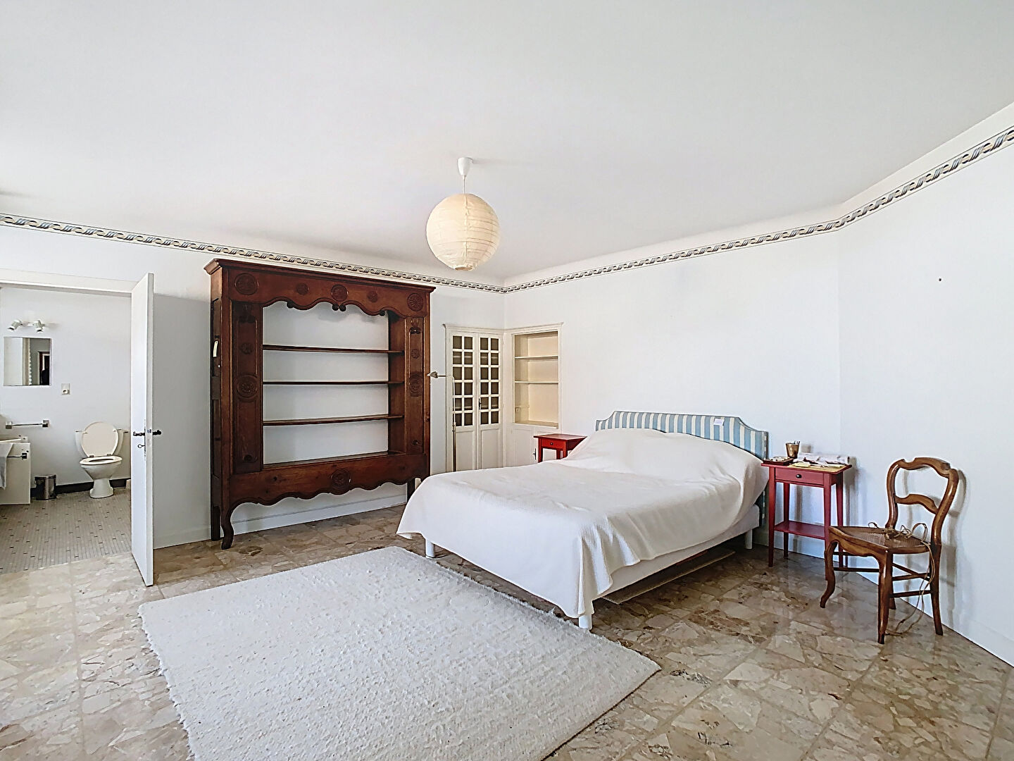 Elle se compose, au rez-de-chaussée, d'un hall d'entrée, d'un séjour de 50m² idéalement exposé, d'une salle à manger de 21m², d'une cuisine de 22m², de deux chambres de 19 et 23m² et d'une salle de bains.