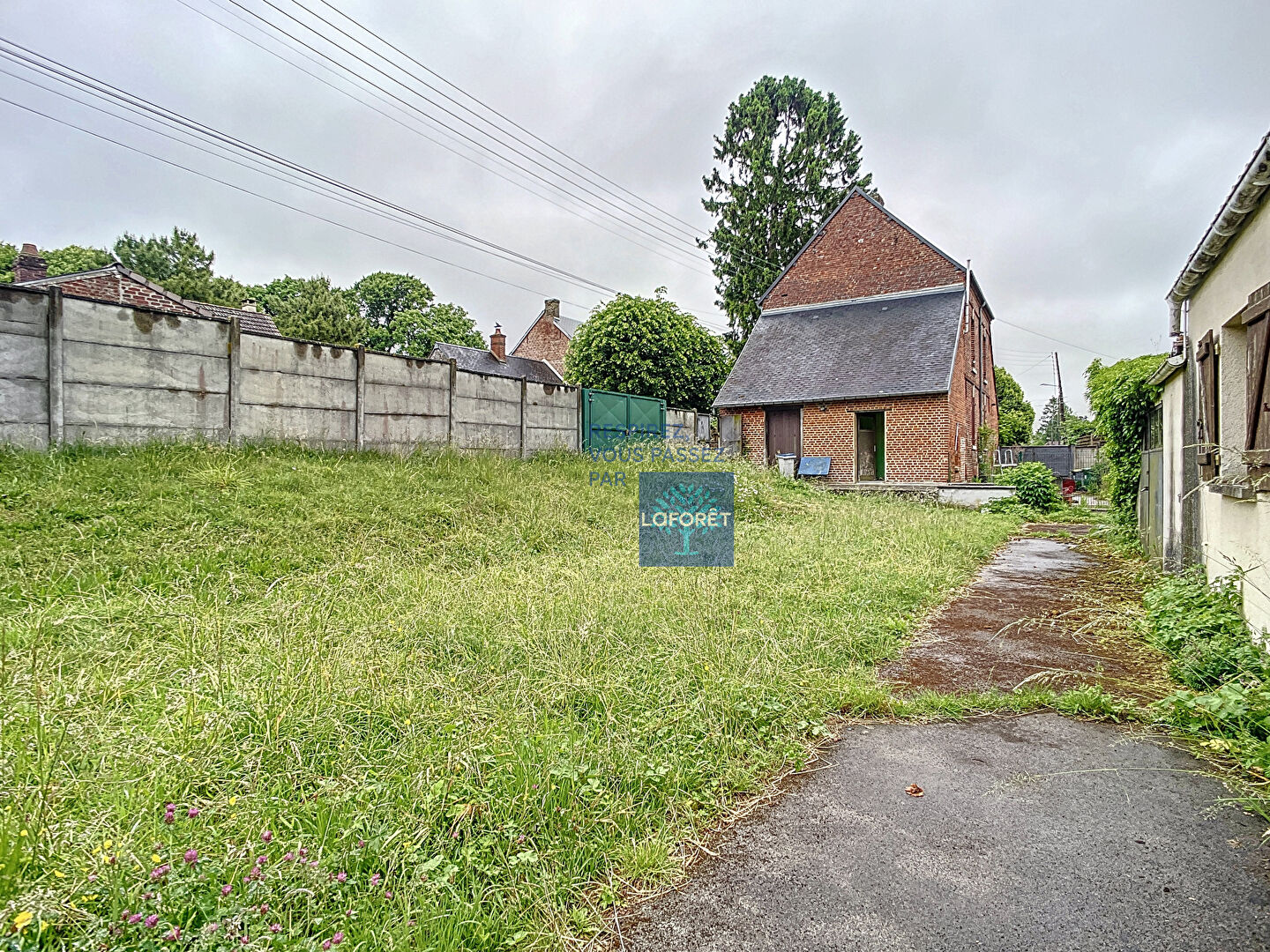 Grand jardin/terrain avec accès multiples véhicules et garage.