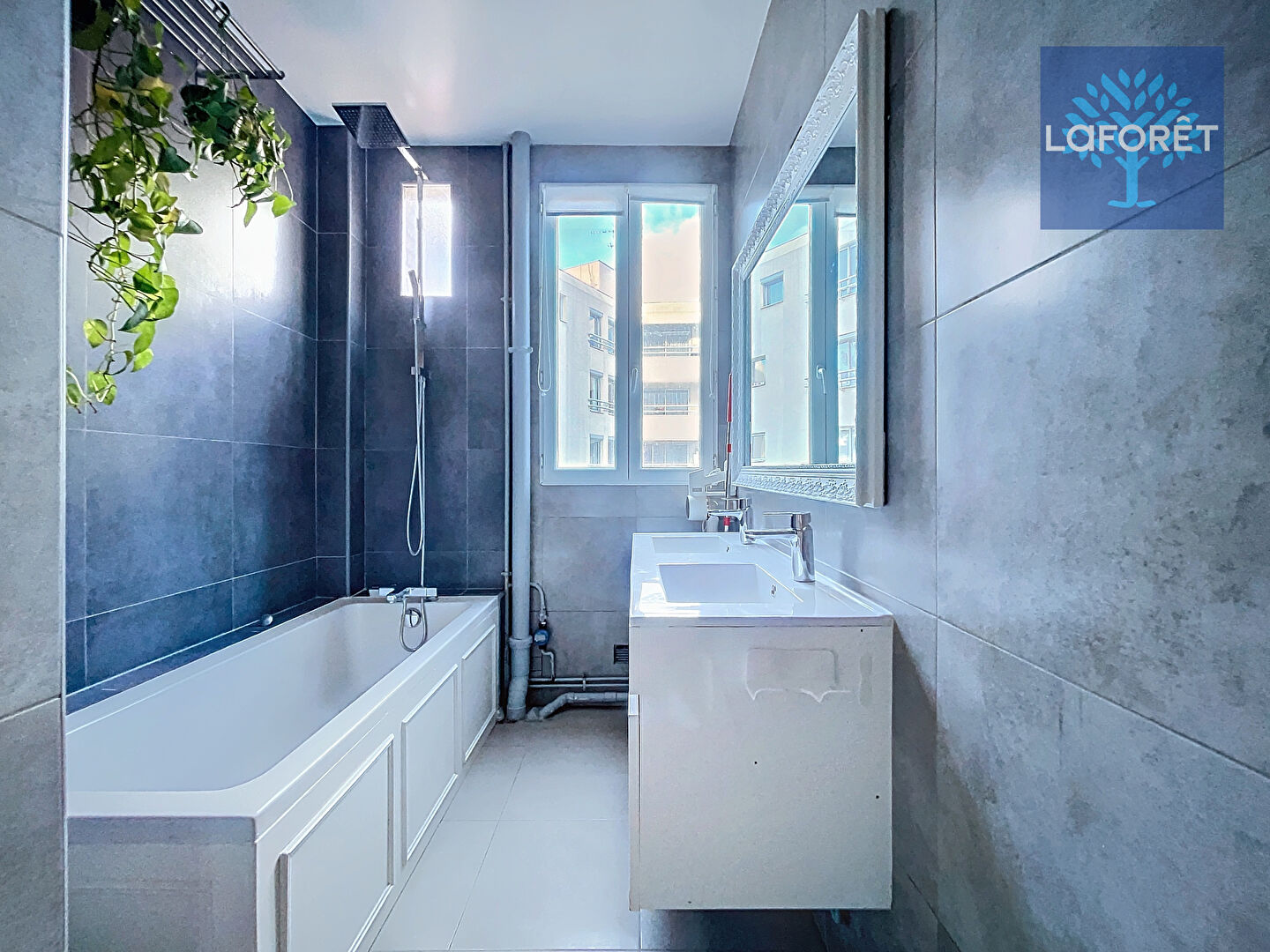 - Une salle de bains disposant d'une baignoire et d'une double vasques,