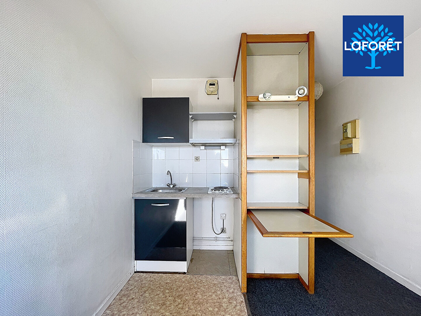 Ce studio est composé d'une pièce principale avec une kitchenette, une salle d'eau avec wc.