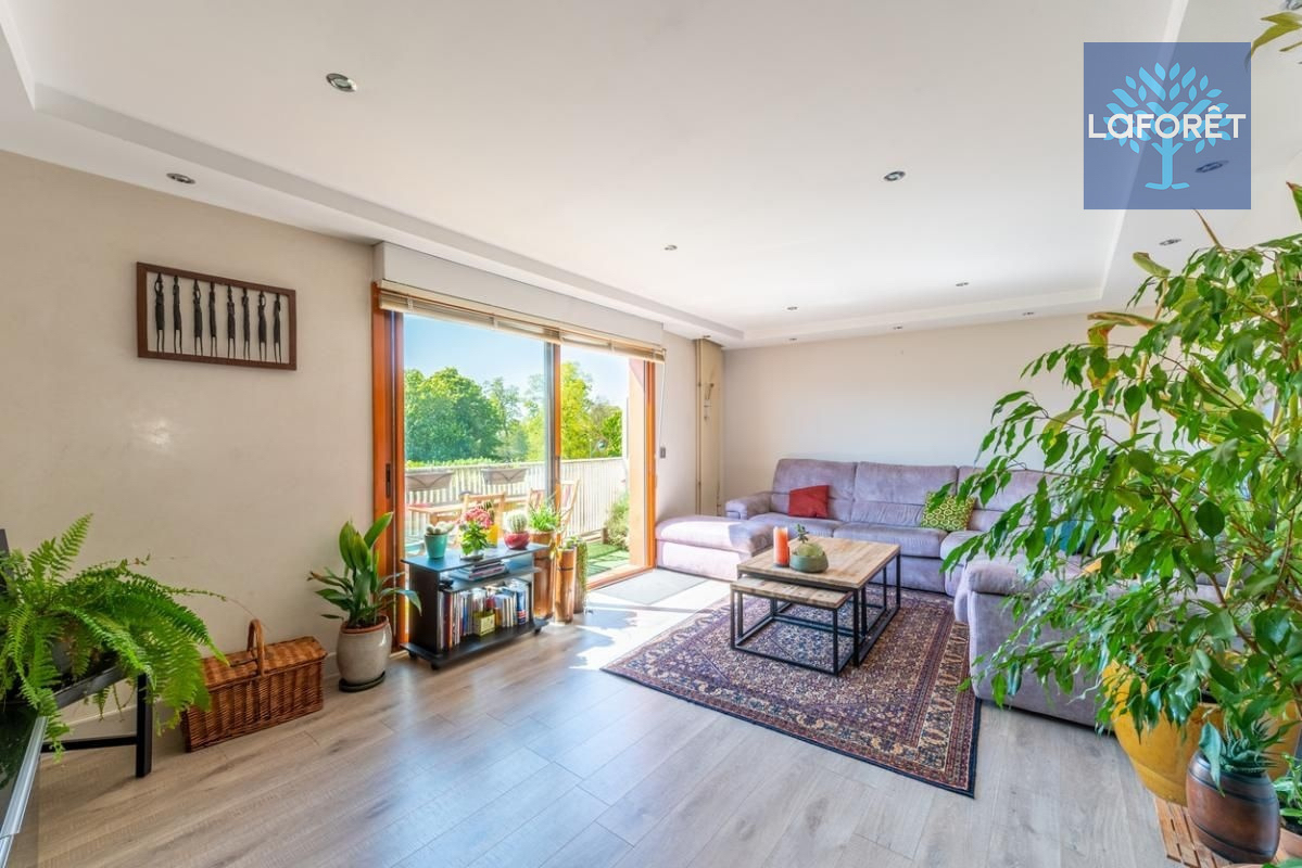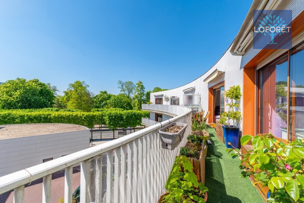 Le séjour spacieux s'ouvre sur un balcon de 11 m² sans vis-à-vis, idéal pour profiter d'un espace extérieur en plein centre-ville.
