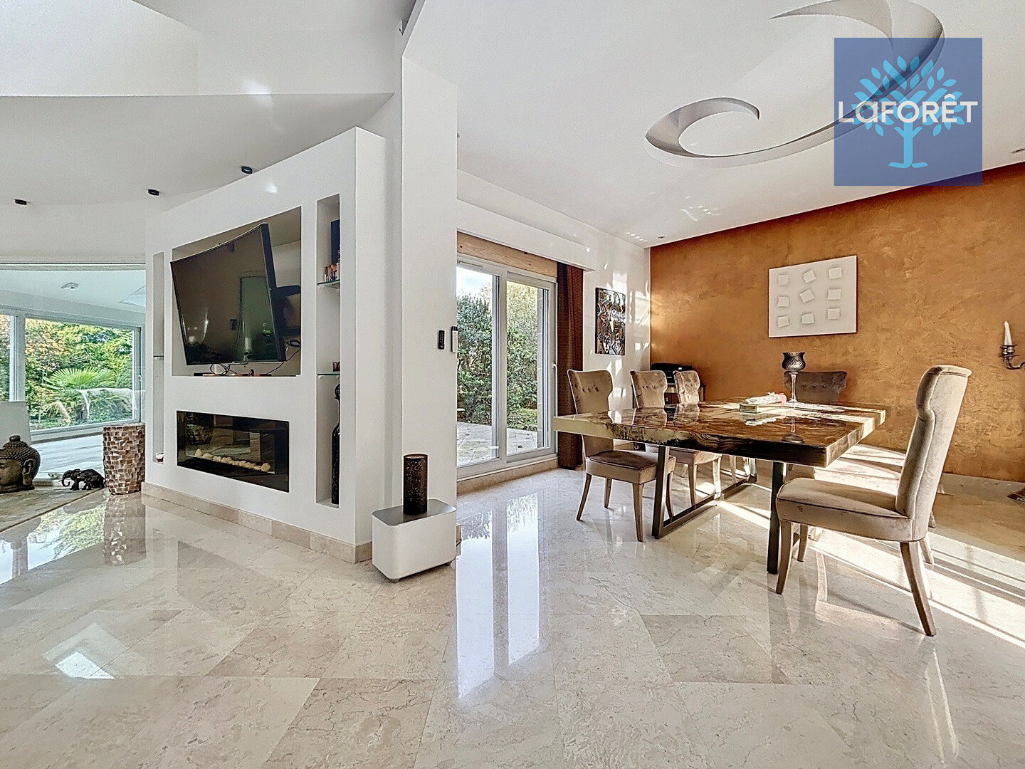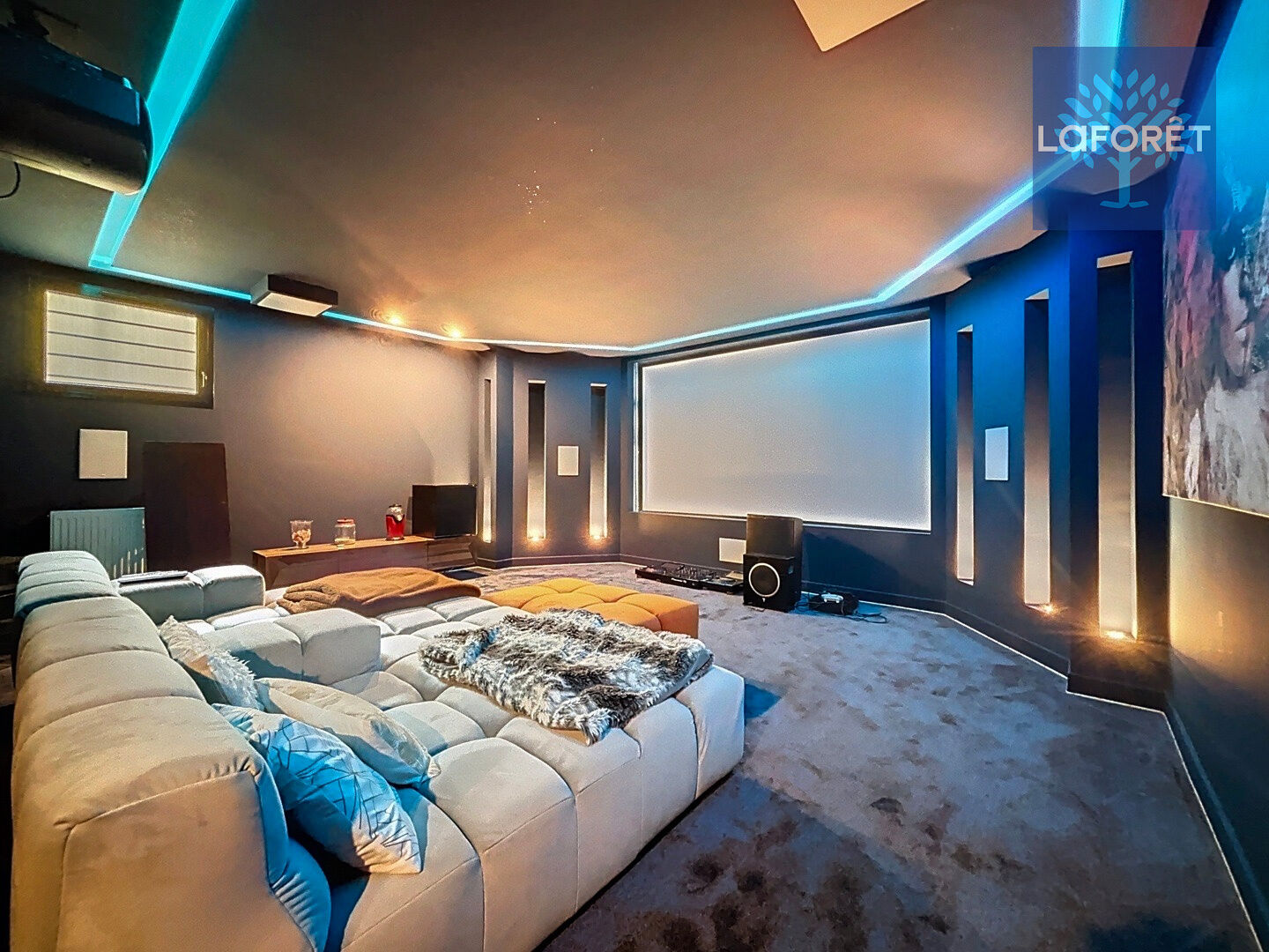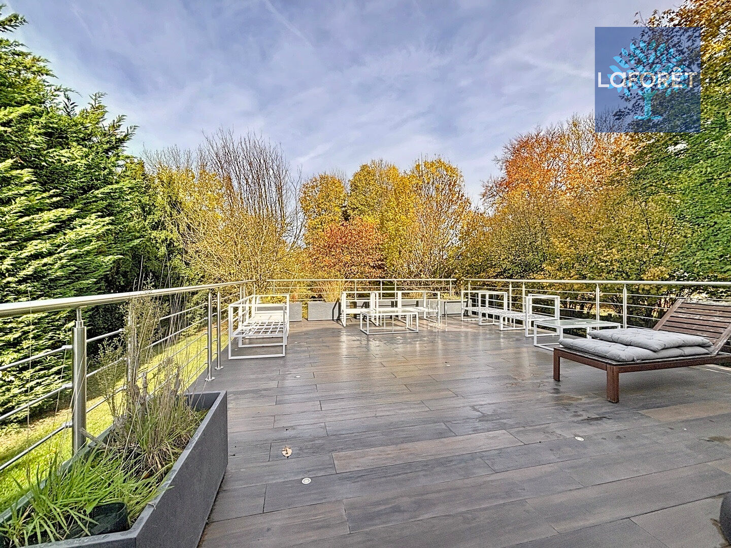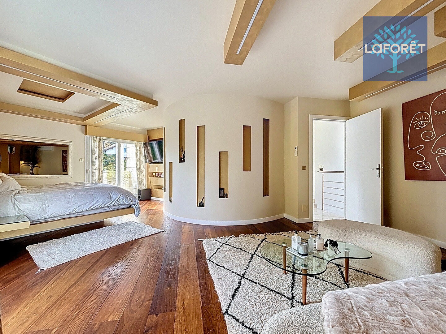 Édifiée sur un terrain arboré de plus de 2 300 m², elle offre 350 m² habitables baignés de lumière et un séjour aux volumes spectaculaires, conçu pour sublimer l'espace et la convivialité.