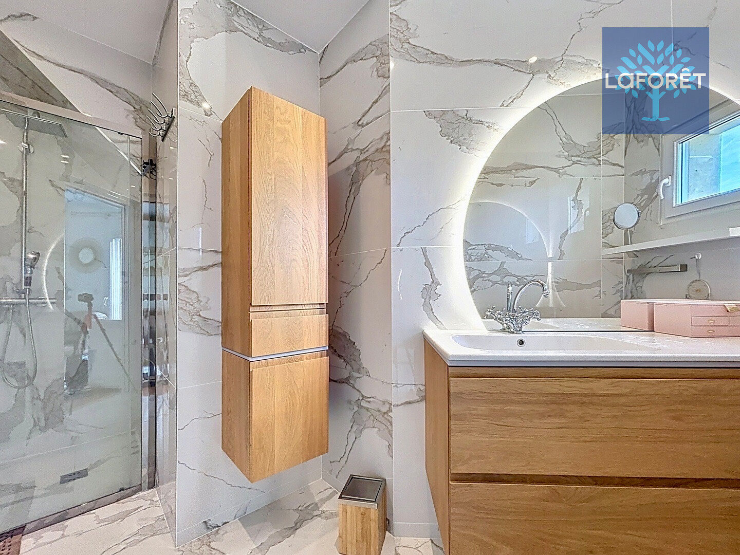 La cuisine neuve, entièrement aménagée et équipée, s'intègre parfaitement à cet univers contemporain et raffiné.