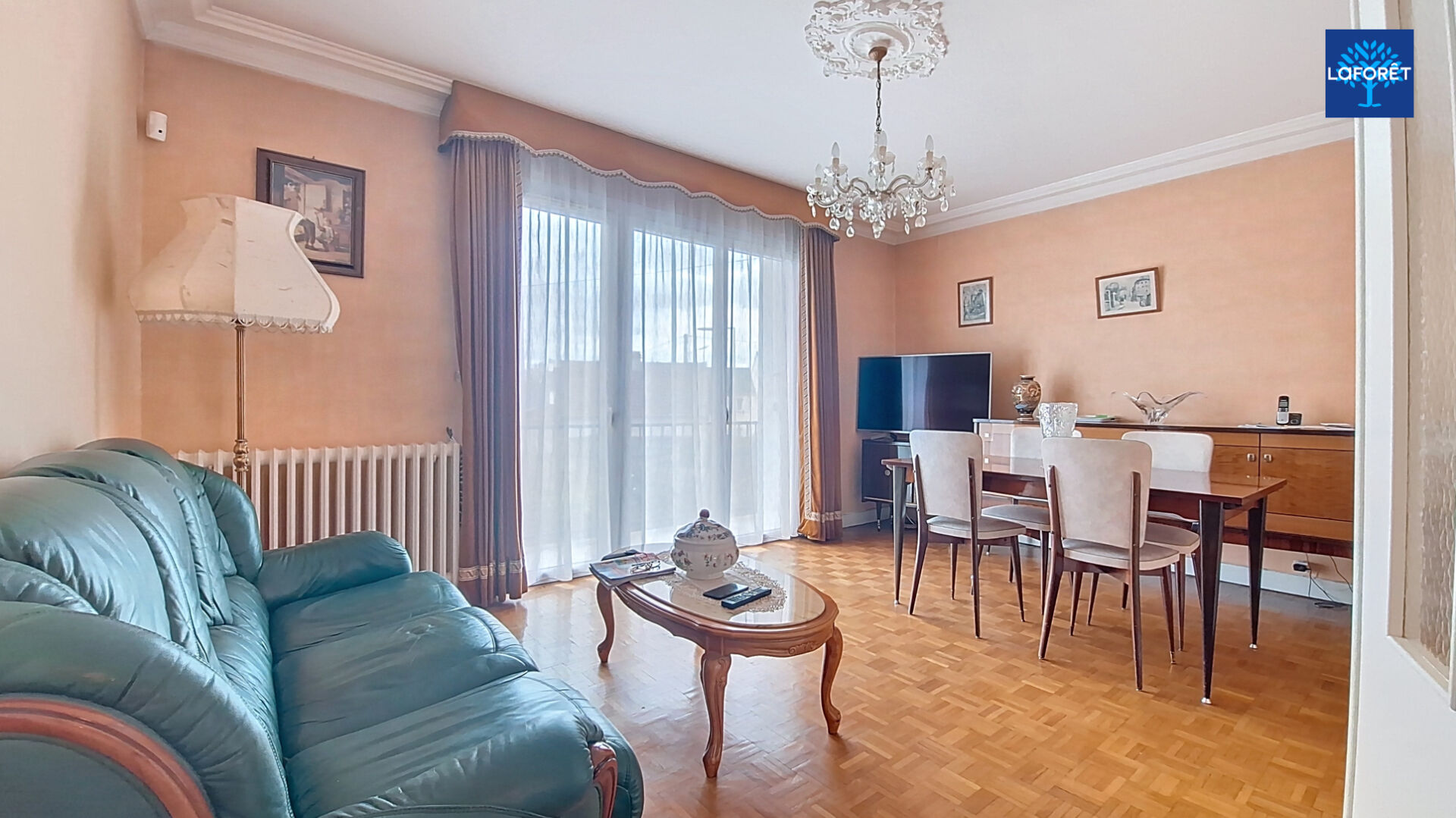 d'un séjour lumineux ouvrant sur un balcon,