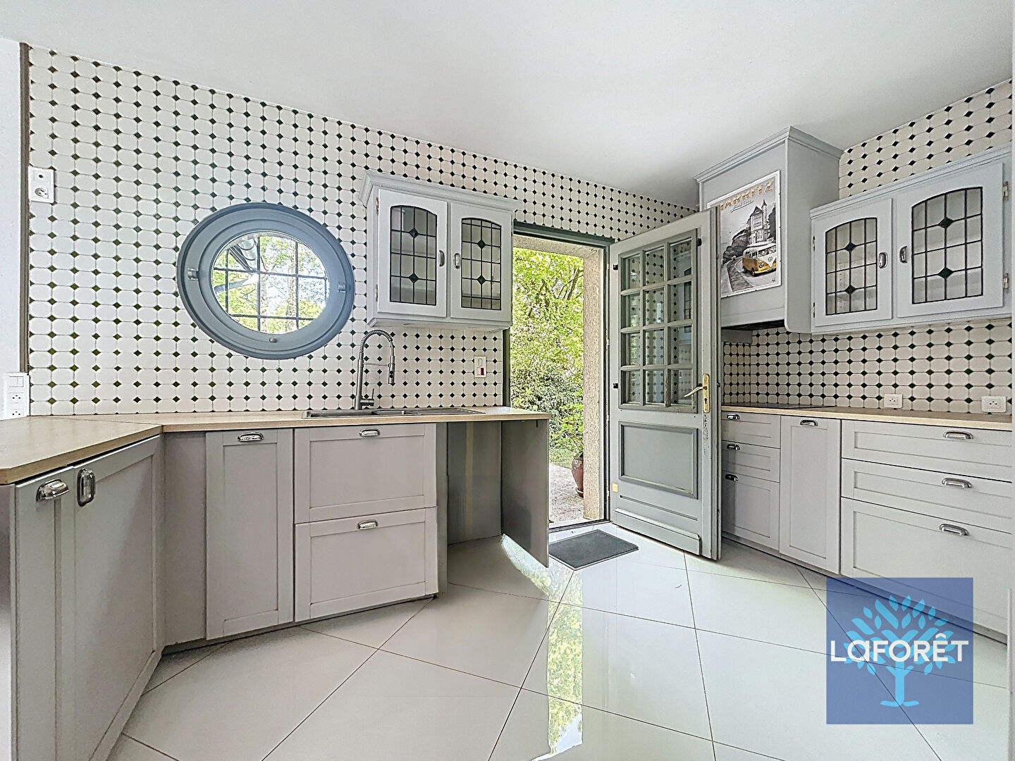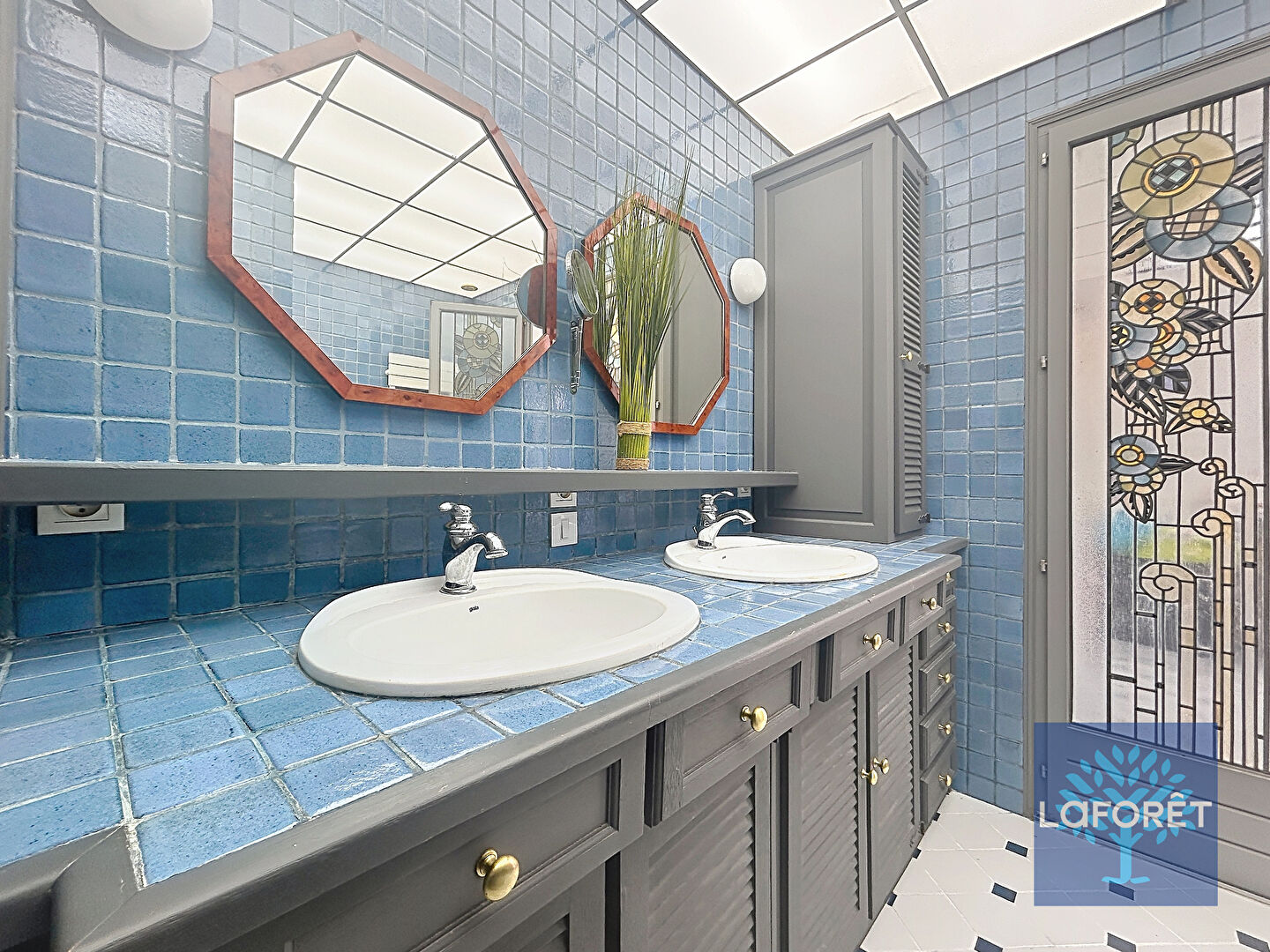 Au rez-de-chaussée : un double séjour avec une cheminée à insert ouvrant sur une cuisine équipée et aménagée donnant sur le jardin arrière, deux belles chambres ,une salle de bains, un WC et une une grande buanderie aménagée.