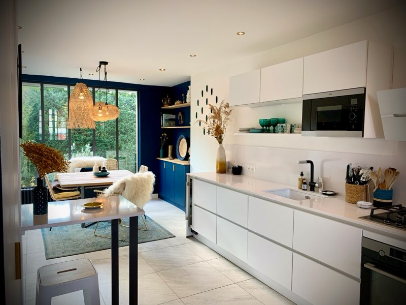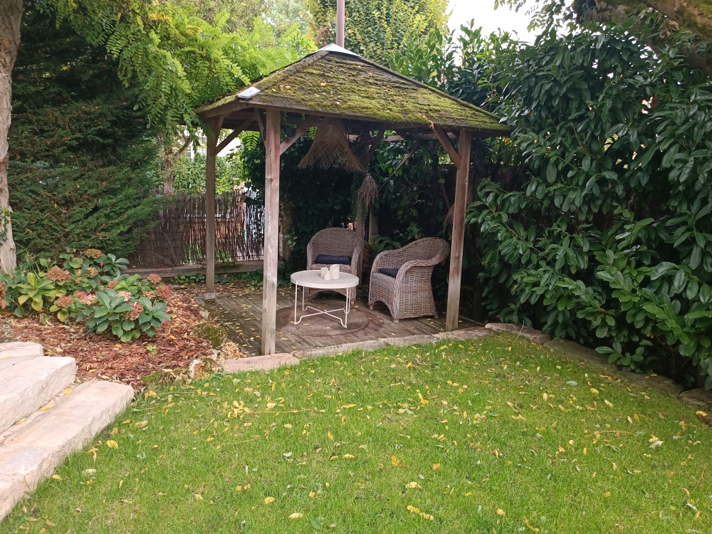 Le rez- de- jardin se compose d' une grande pièce de vie, une buanderie, un garage / atelier.