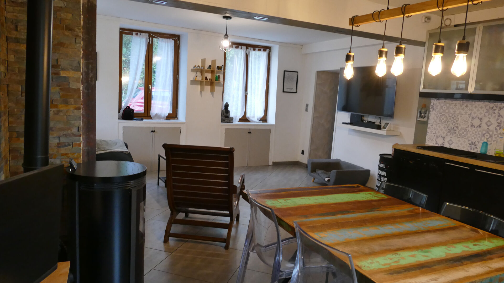 En rez-de-chaussée, l'entrée dessert un séjour et salle à manger sur cuisine ouverte donnant un espace de vie de 30m² environ lumineux par sa double exposition avec accès direct sur terrasse et son barbecue fixe, cour et jardin sans vis à vis , toujours en rdc un cabinet de toilette , salle de bains avec douche, lingerie /chaufferie. A l'étage le palier dessert 3 chambres et un bureau de 13m²( possible de convertir en 4éme chambre ) . Fenêtres double vitrage , poêle à bois , eau chaude sanitaire avec ballon thermodynamique, adoucisseur d'eau , PAC en relève de chaudière, parking intérieur 2 voitures possible de faire un carport . Les des services de santé , écoles élémentaire/ maternelle, collège , commerces à moins de 10mn .