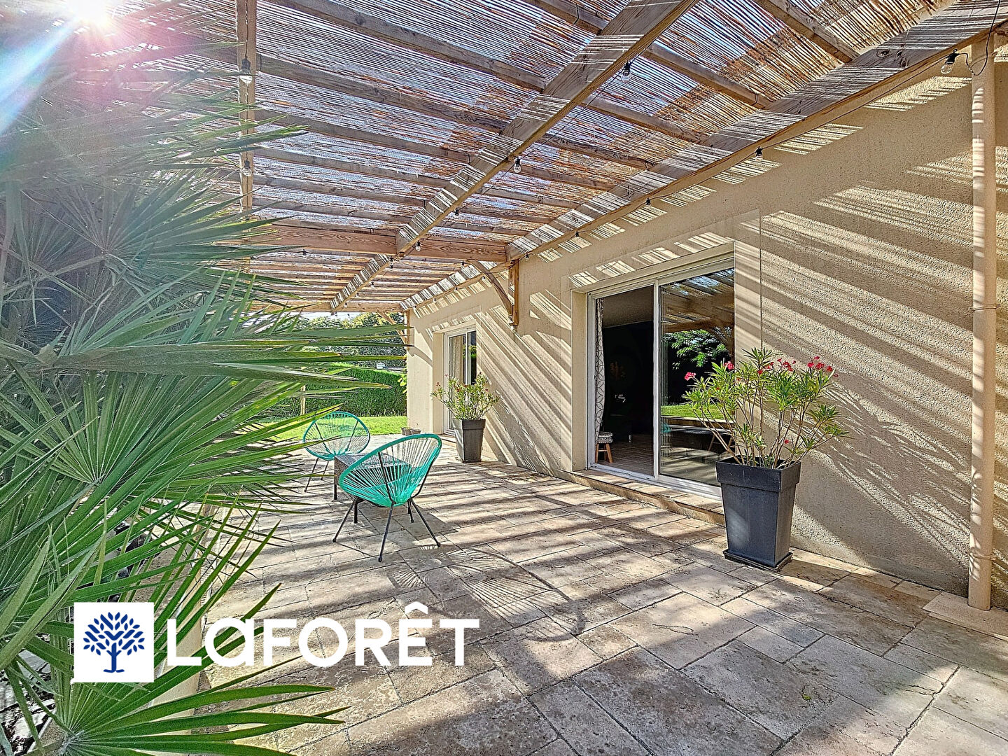 Vous y trouverez, une entrée, une cuisine aménagée et équipée donnant sur une buanderie. Un vaste salon séjour exposé plein sud donnant sur le jardin avec sa terrasse couverte d'une pergola en bois. Une chambre avec placards et salle d'eau ainsi qu'un WC.