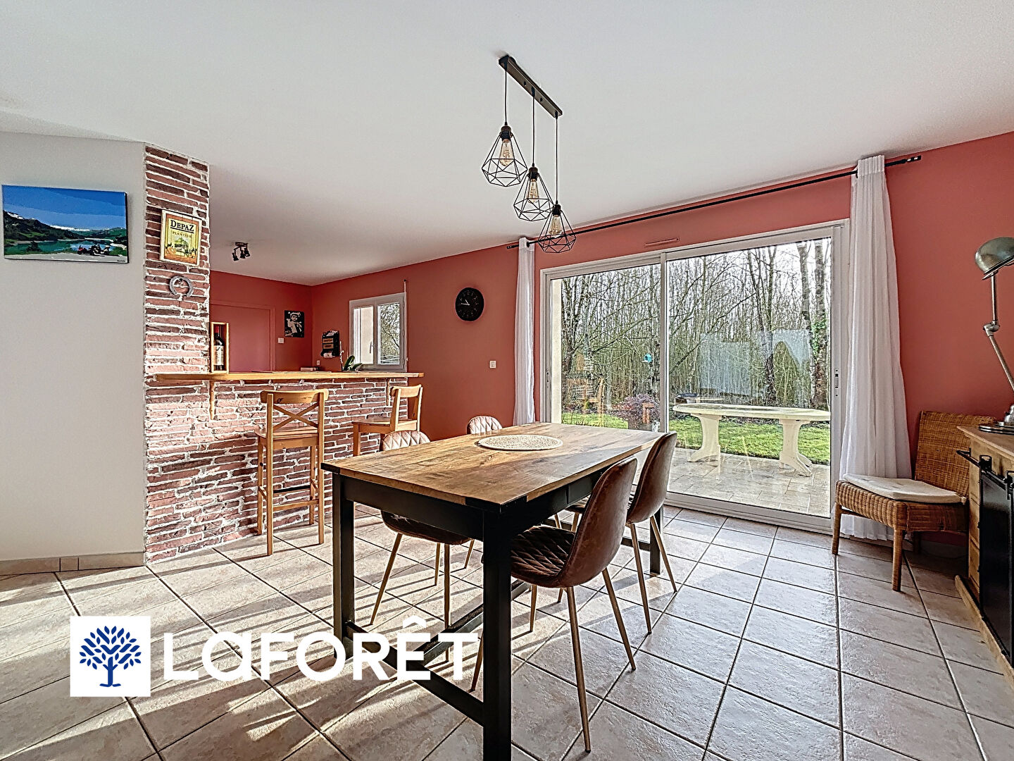 La maison propose une entrée avec placards, une belle pièce de vie lumineuse, bénéficiant d'une triple exposition, avec une cuisine ouverte aménagée et équipée, conviviale et fonctionnelle.