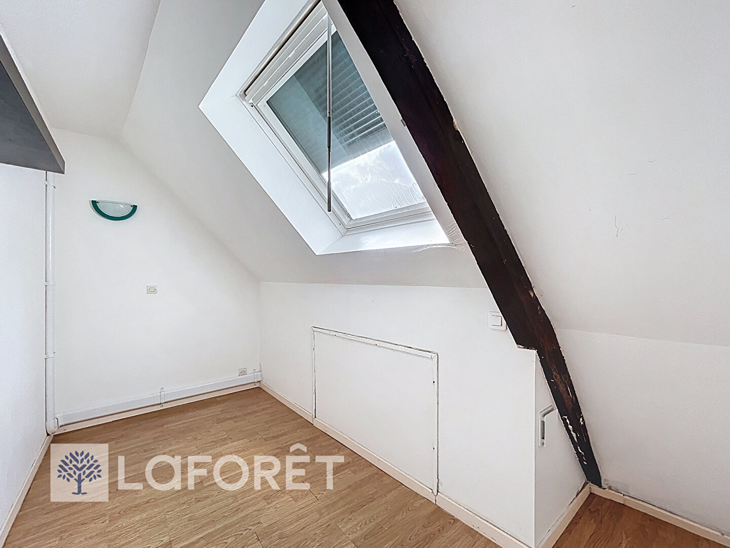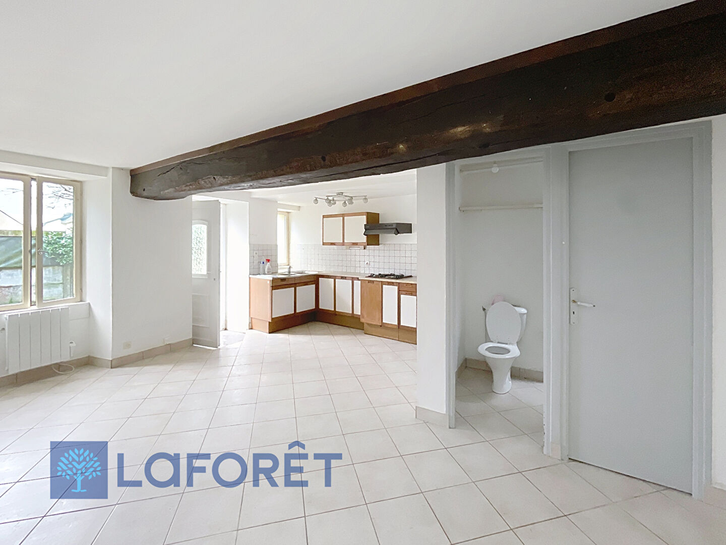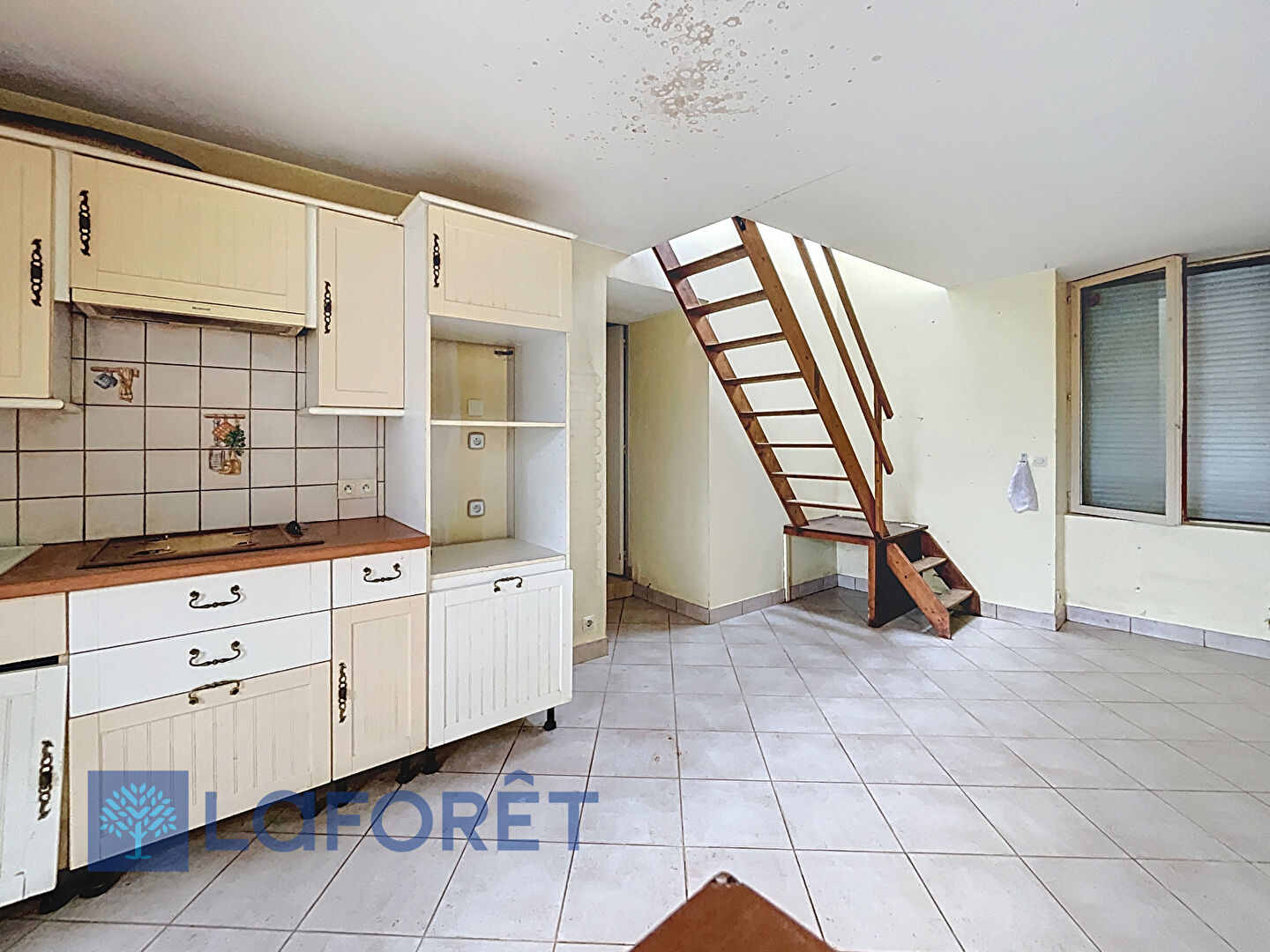 Maison de 46.32 m² habitables offrant pièce de vie avec coin cuisine, salle d'eau avec wc et chambre à l'étage, préau et jardinet. Travaux à prévoir