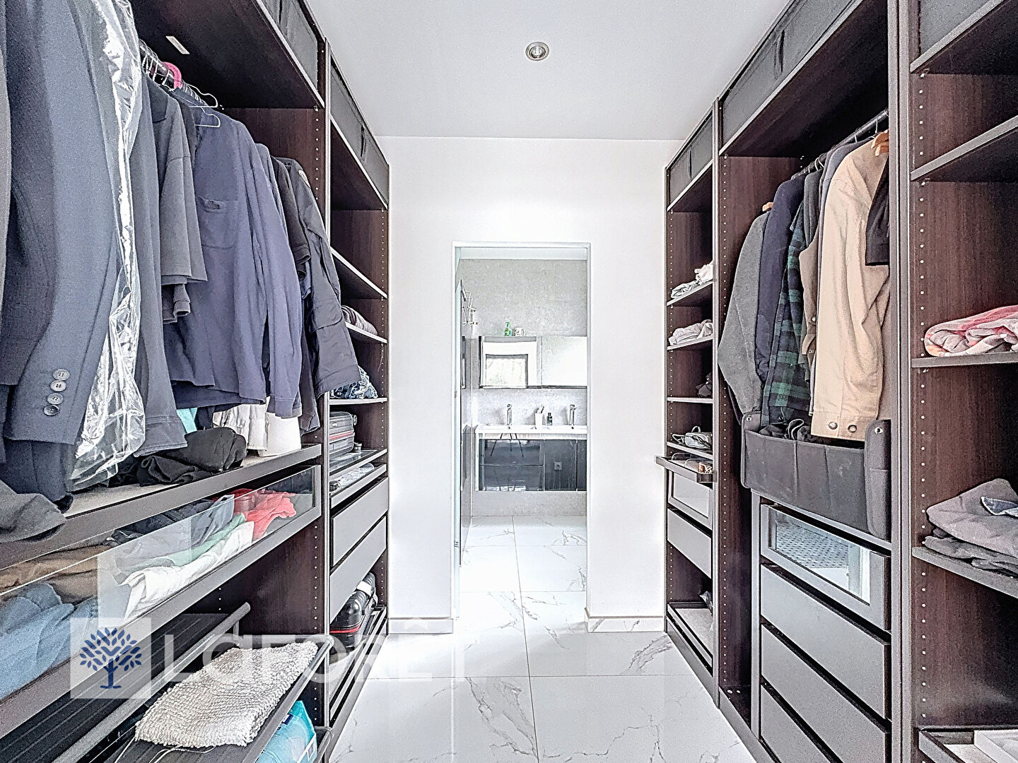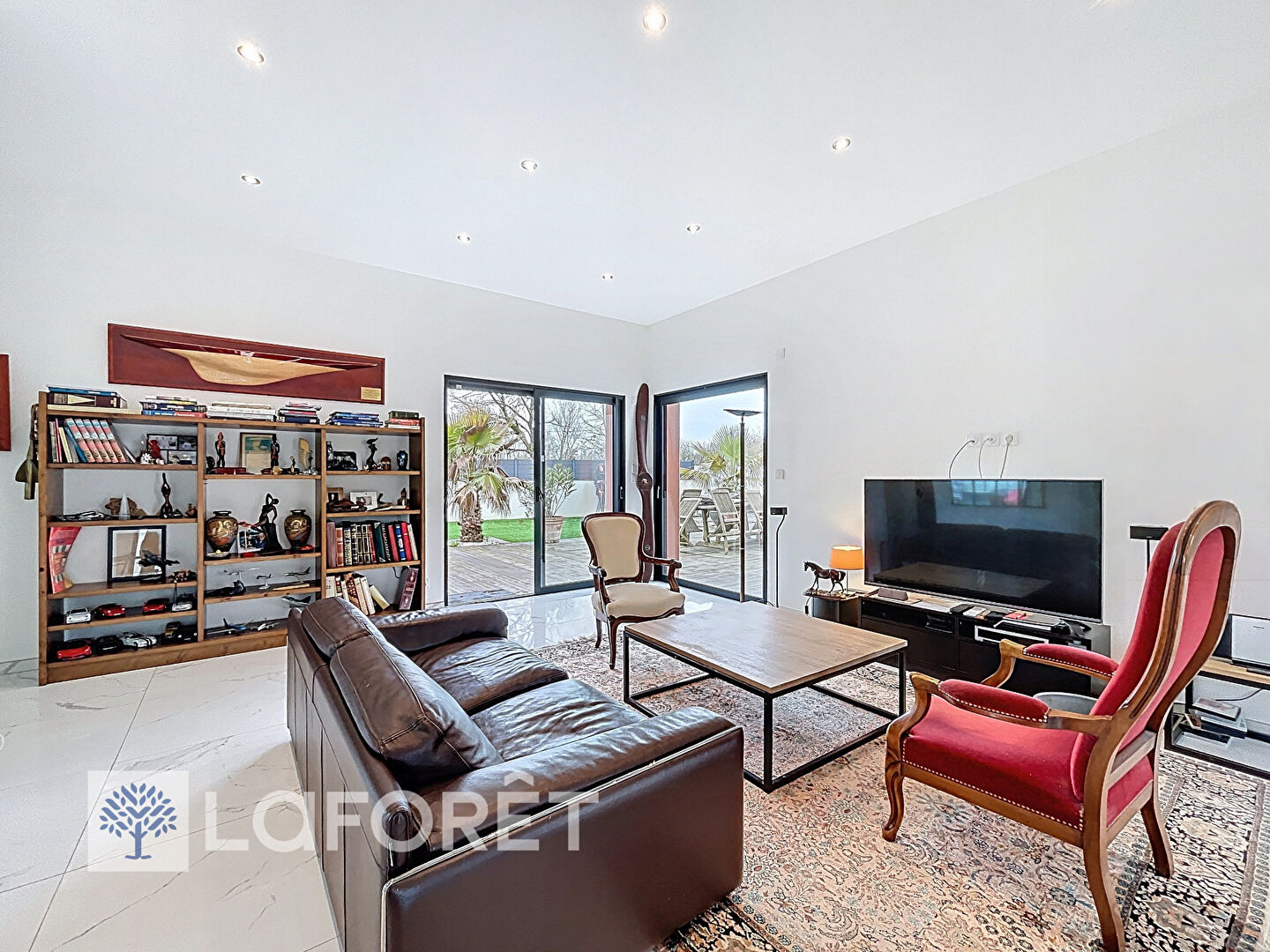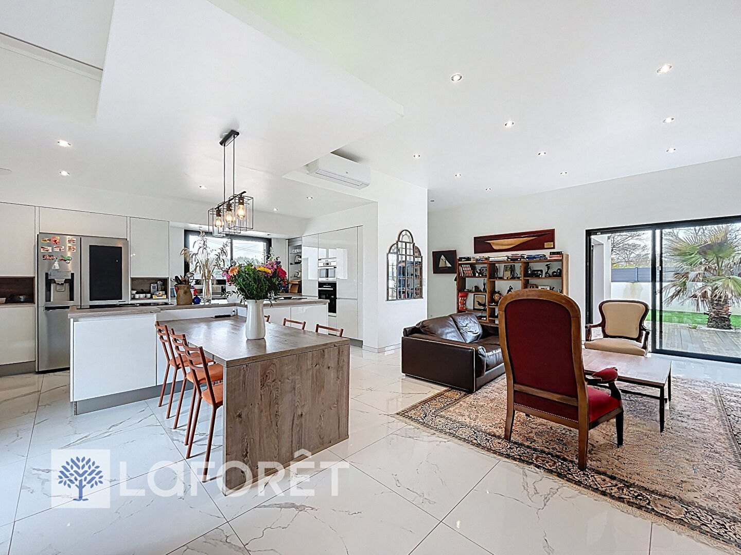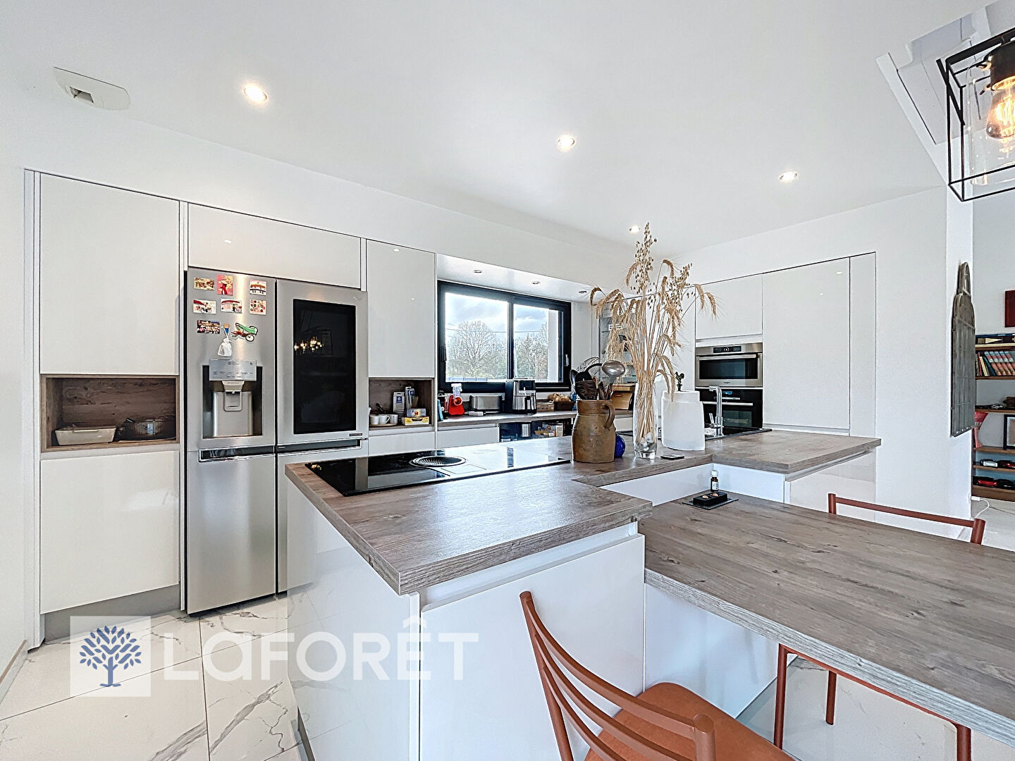 Elle vous offre une entrée avec placard, un salon spacieux doté d'une hauteur de plafond de 3 mètres, une cuisine ouverte entièrement aménagée et équipée avec des finitions haut de gamme, un espace parents avec chambre, dressing et salle d'eau et un espace enfants composé de trois chambres avec placard, salle de bains avec baignoire et douche. Cellier et garage de 39 m² attenant.