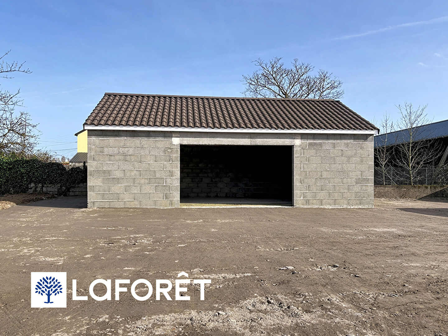 S'ajoute au bien, un double garage neuf en cours de finition, parfait pour le rangement ou le stationnement.