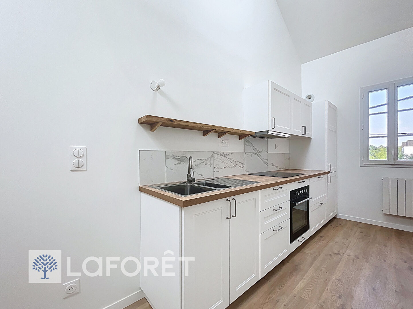 Charmant studio de 2024, comprenant une pièce de vie avec cuisine ouverte aménagée et équipée, une salle d'eau avec WC et une mezzanine.