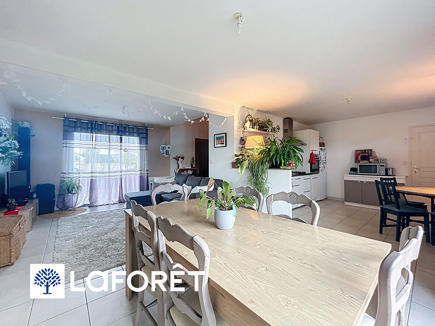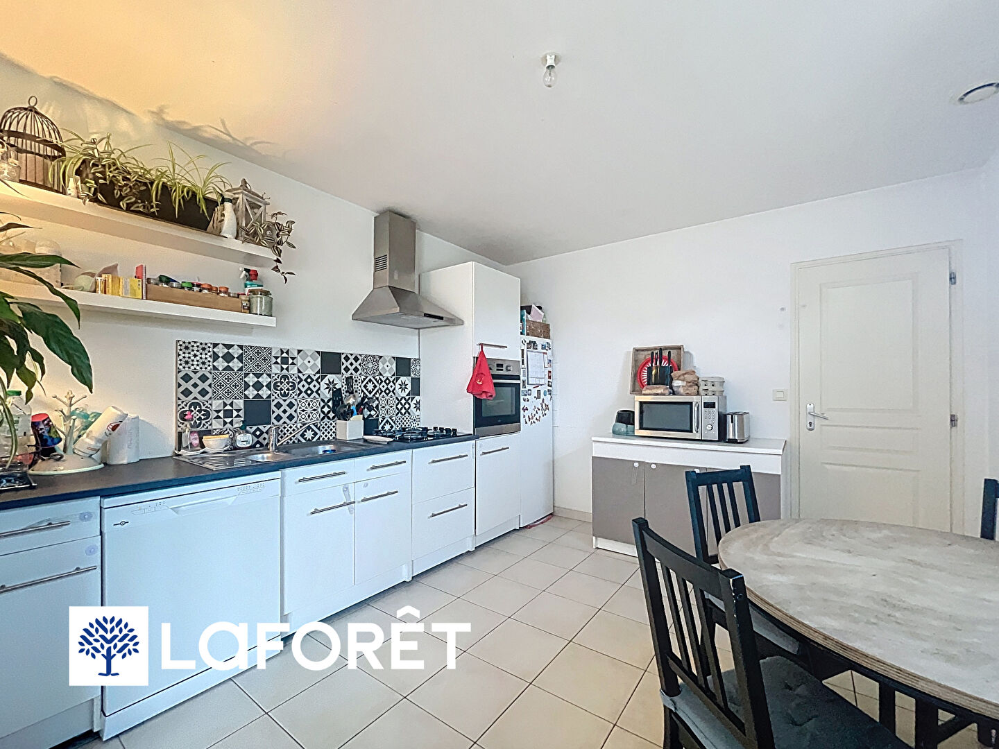 Elle se compose, au rez-de-chaussée, d'une entrée, d'un WC, d'une pièce de vie spacieuse et lumineuse avec cuisine ouverte (plaque gaz, hotte, emplacements four et lave-vaisselle).