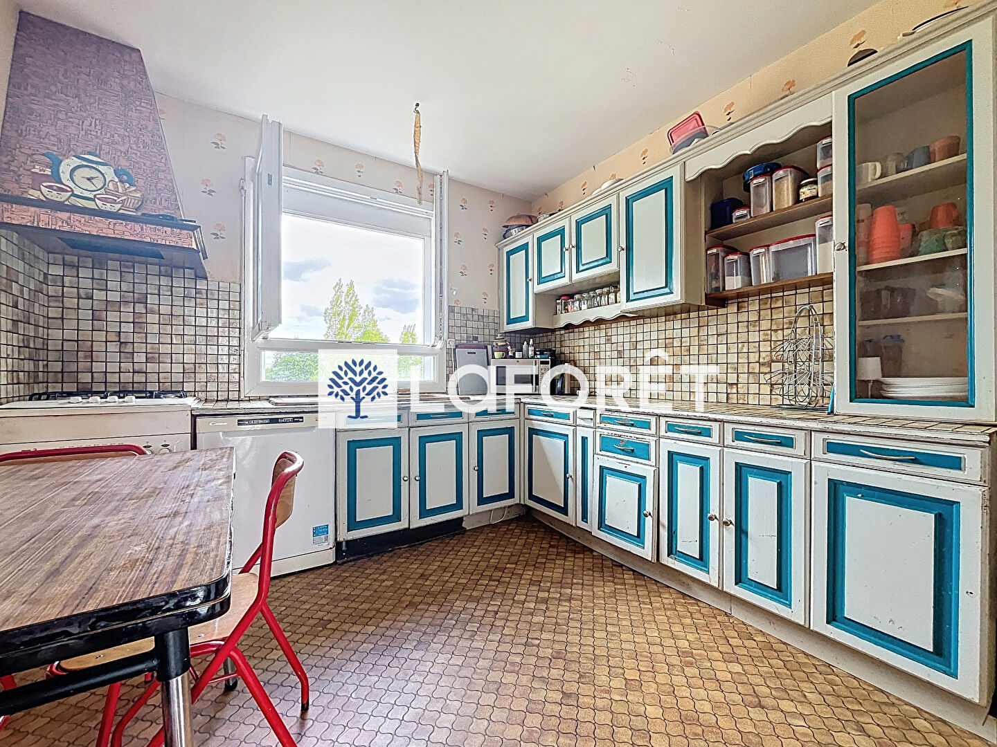une entrée, un salon-séjour de 35m2, une cuisine aménagée de 10m2, trois chambres de 9m2, 9,5m2 et 10m2, une salle de bains et un WC.