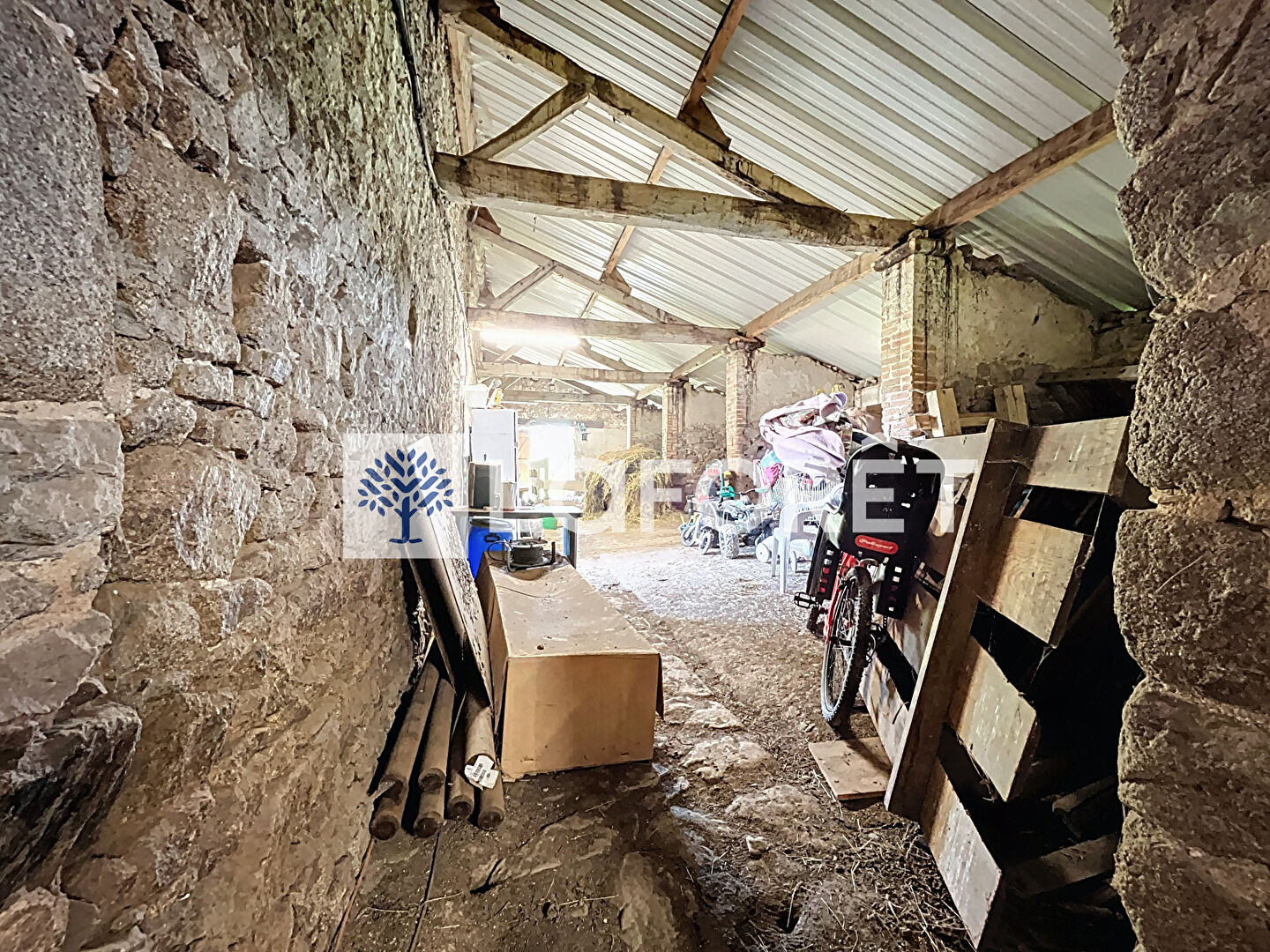 À l'extérieur, les dépendances d'environ 300 m² ajoutent un véritable atout à cette propriété. Elles se composent d'un préau, d'une écurie et d'une grange, offrant de multiples possibilités de rangement, d'aménagement ou de développement d'activités.