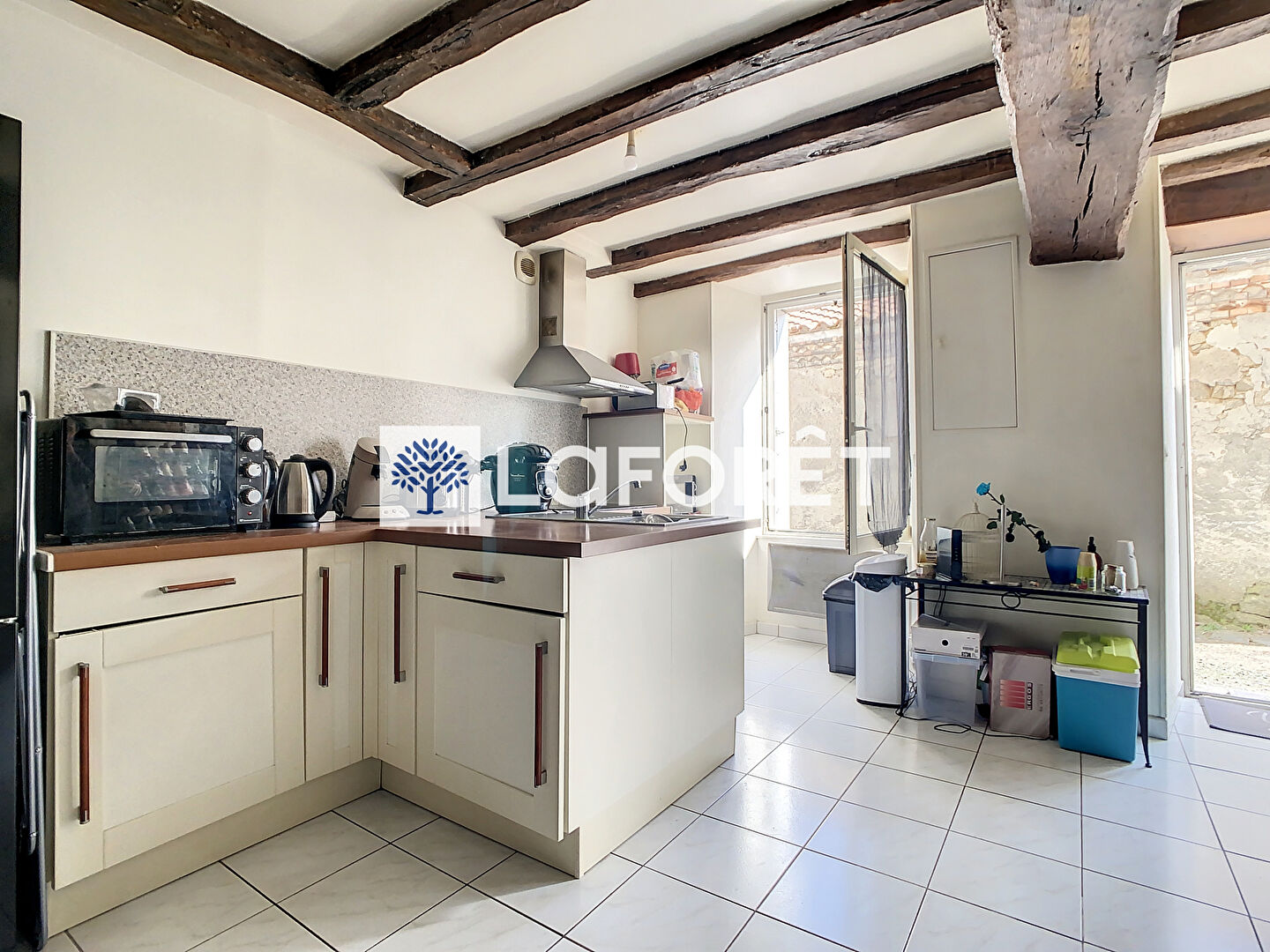 EN EXCLUSIVITÉ , cette maison de bourg, comprend au rez-de-chaussée : une pièce de vie d'environ 30 m2 avec une cuisine aménagée et une buanderie avec WC.