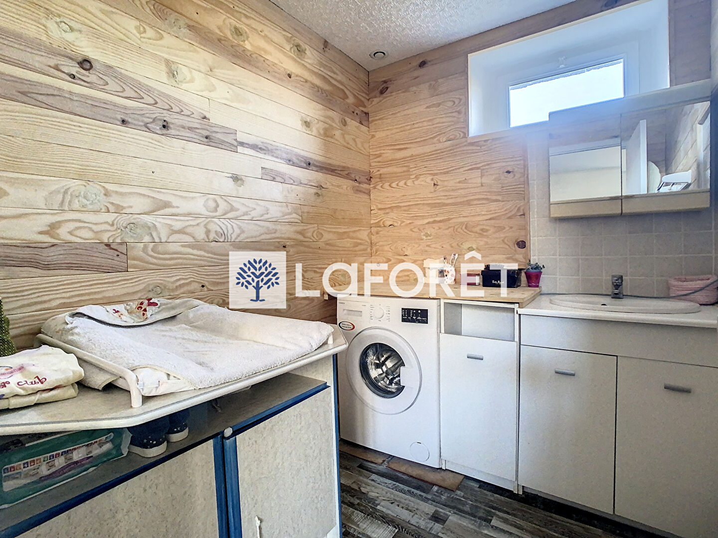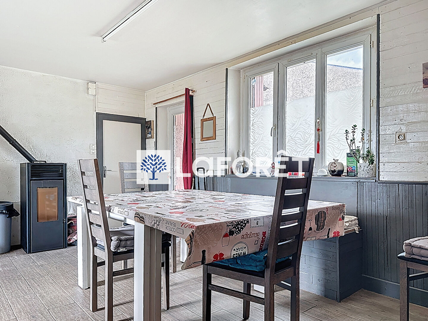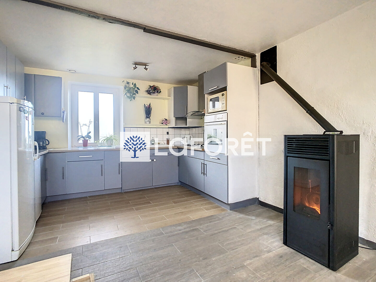 Elle comprend, au rez-de-chaussée, une pièce de vie ouverte de 55m2 avec poêle à granulés ouverte sur une cuisine aménagée et équipée . Une buanderie et salle d'eau avec WC.