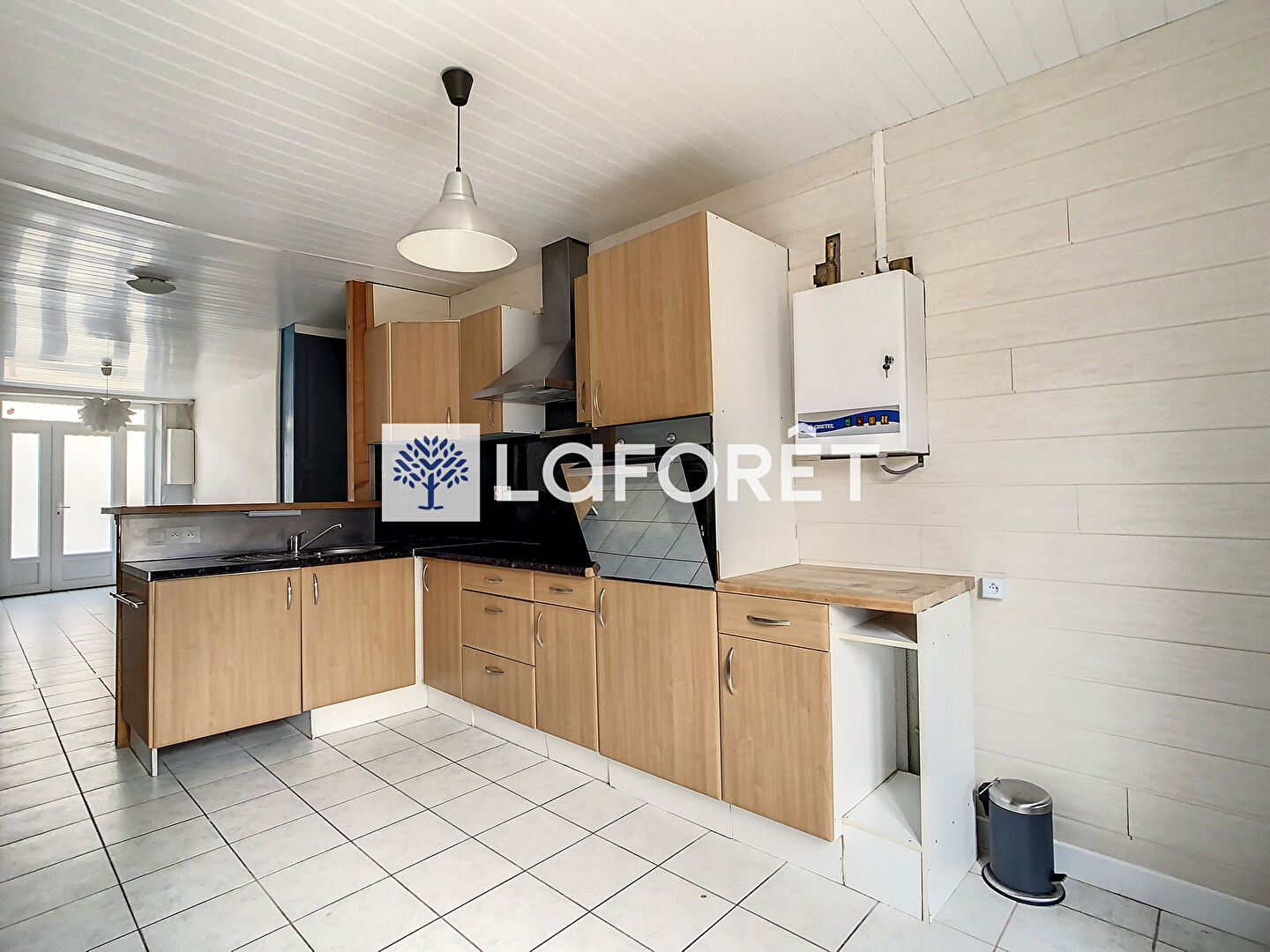 Au rez-de-chaussée, une cuisine aménagée et équipée ( plaque, hotte, four ) ouverte sur une pièce de vie et donnant sur une terrasse à l'arrière de la maison, une buanderie avec branchement machine à laver et un WC indépendant.