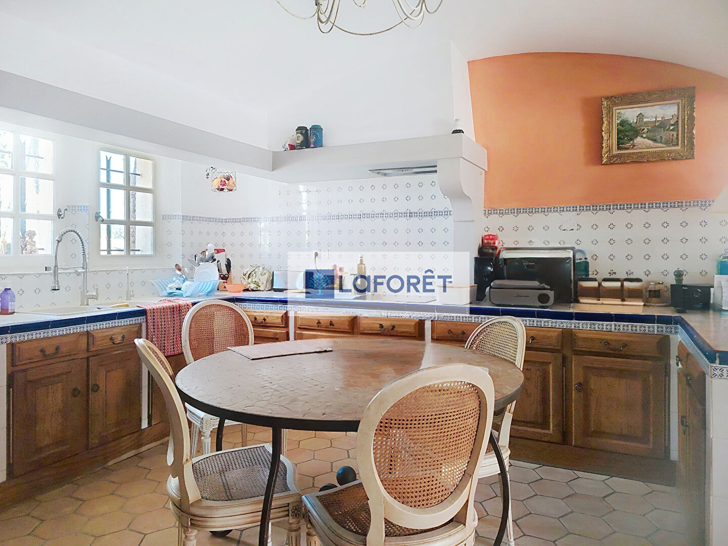 La cuisine aménagée et équipée de 18 m² s'ouvre sur une salle à manger de 21 m², créant un espace convivial et fonctionnel.